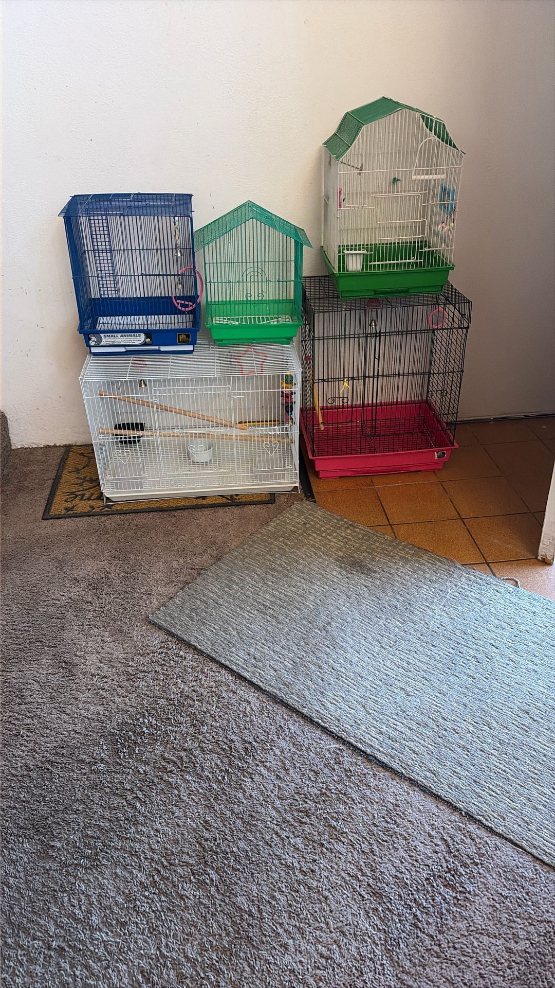Different sizes, white one sold Red cage is 22X17 Green 19X13 Green 14X11 Blue 15X11