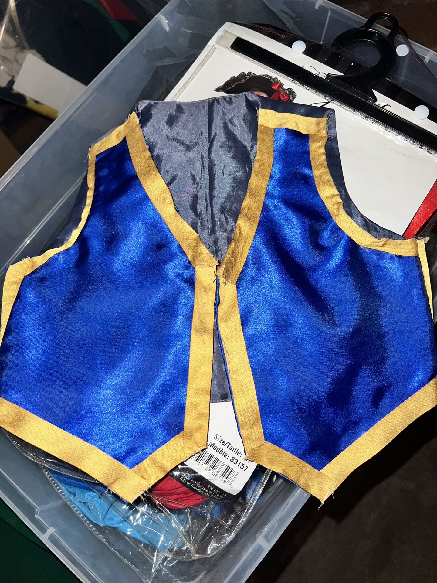 All handmade , each $5 Shy guy face mask with yellow strap to use as a belt cover . We just bought a red sweatshirt and used a belt for my husband. Princess peach: comes with a headband that has a movable crown, gloves that need to be a little cleaned, and a wand. Toad. I just sewed fabric over a vest we had already. Good for 1 -2 years old. Pick up Jurupa Valley