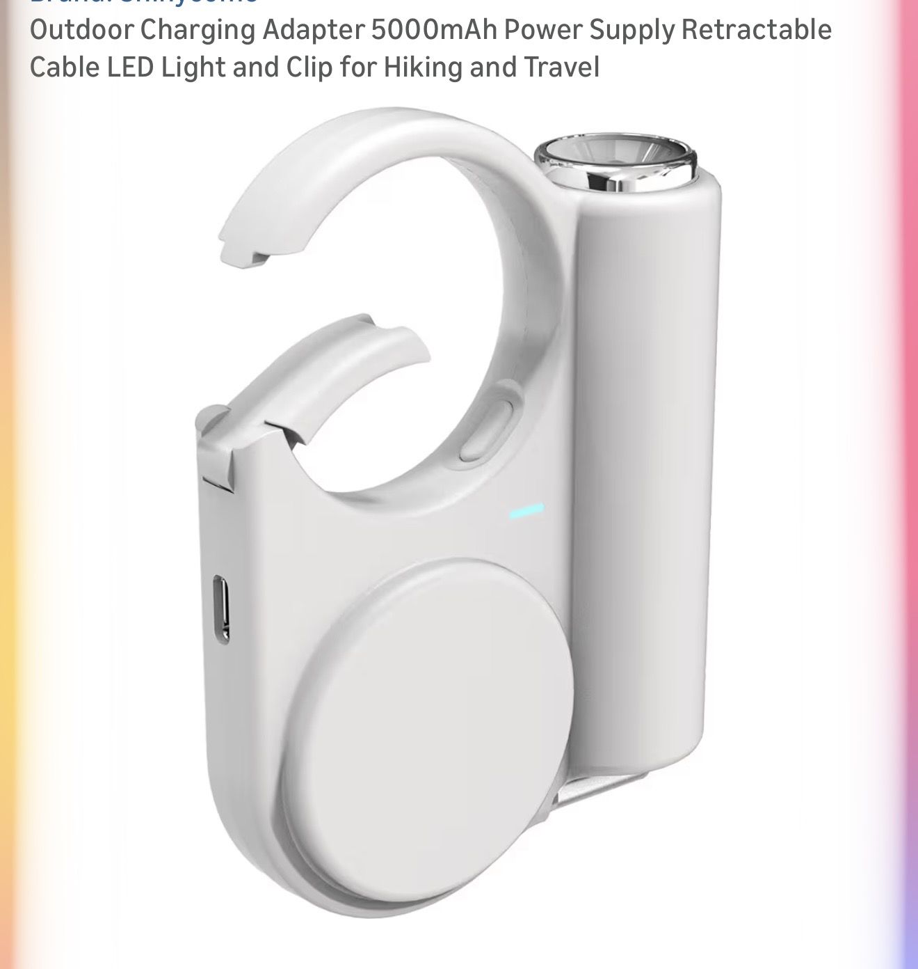 Outdoor Charging Adapter 5000mAh Power Supply Retractable Cable LED Light and Clip for Hiking and Travel