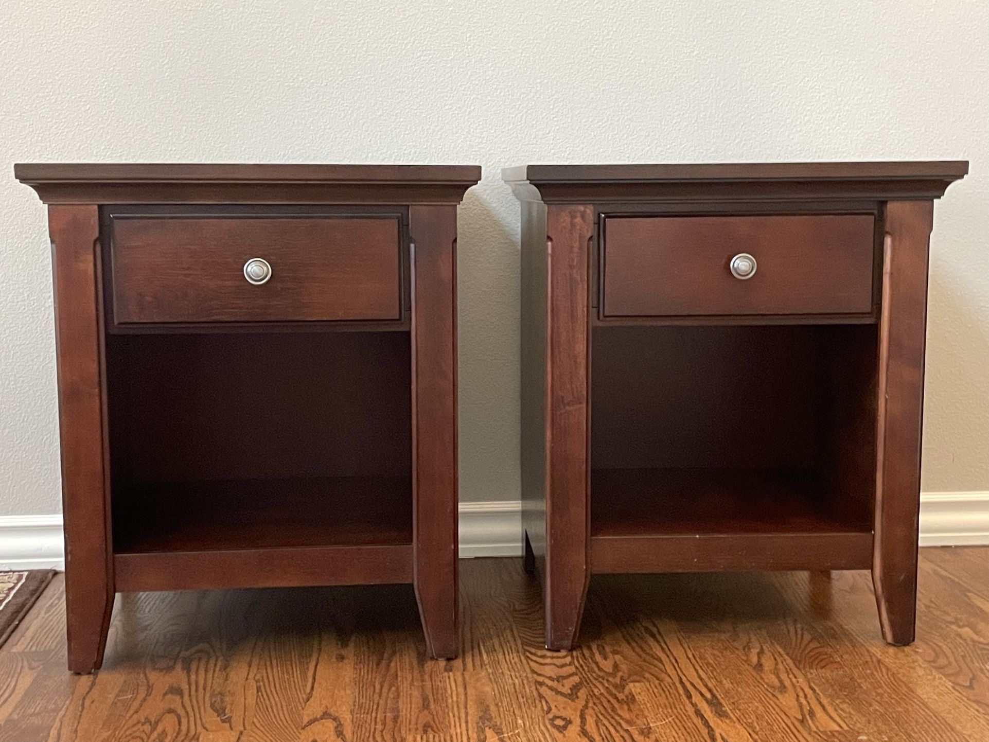 Pair of nightstands from a non smoking home. Fantastic shape no scratches or water marks. 25.5 high x22 wide x 18 deep No trades