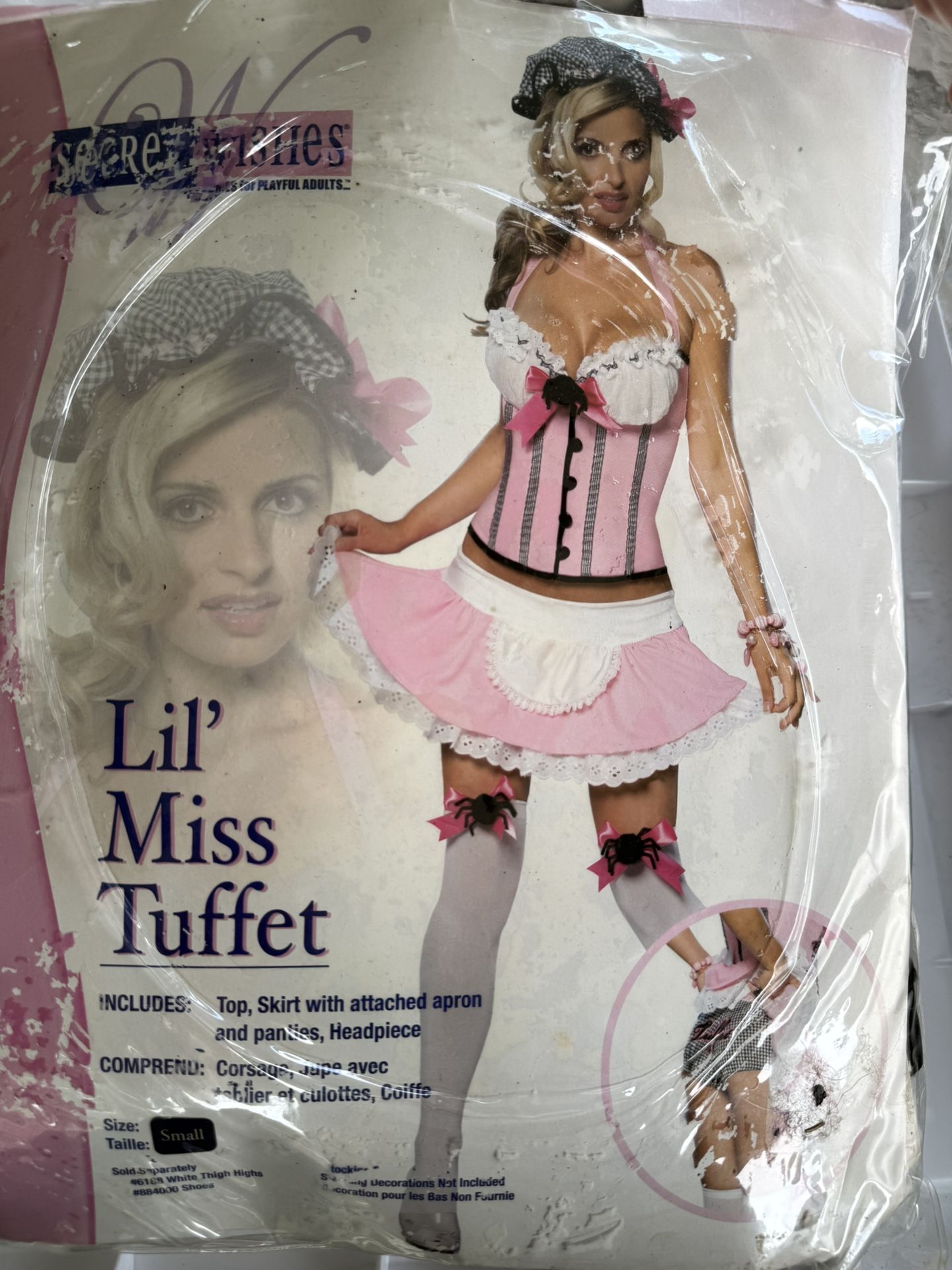 Little miss tuffet costume size small costume Included: bonnet, top, skirt