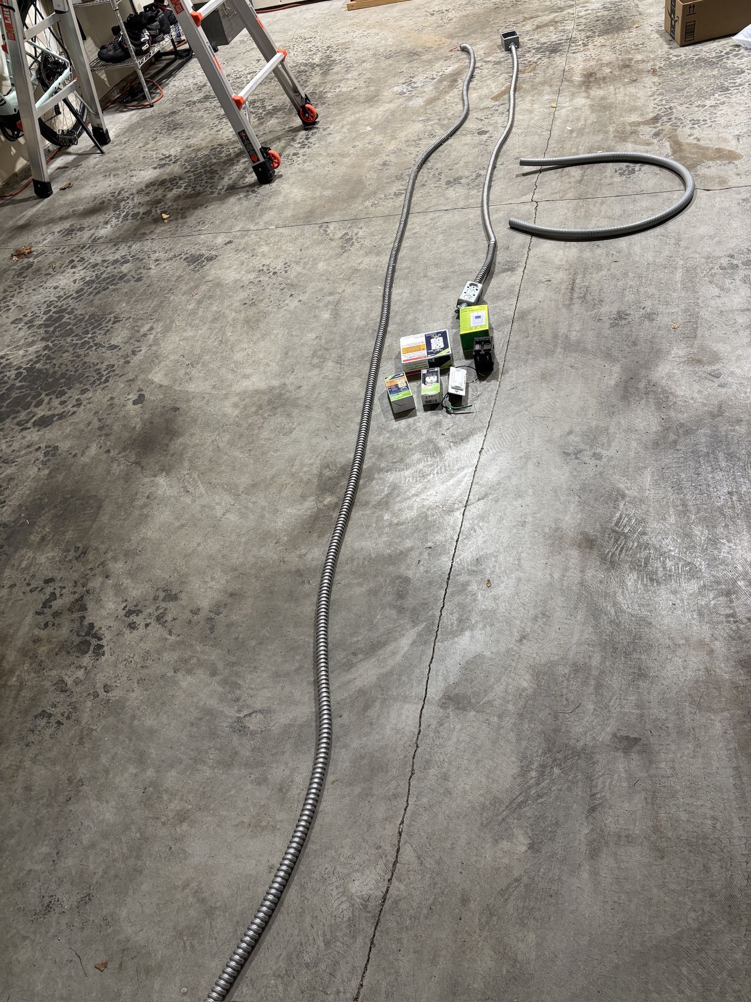 Various electrical supplies. 50 amp breaker,3/4 flex tubing with #12 wires 16 ft. 3/4 flex tubing with box at either end 7 ft 5 ft weather proof conduit 15 amp Leviton receptacle 2 20 amp Leviton gcfi receptacles Lutron motion sensor switch BN link 7 day digital timer