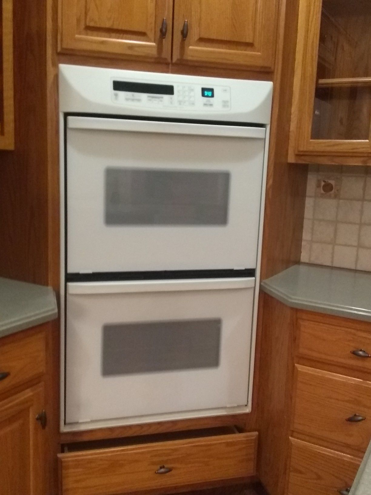 Good condition kitchen aide electric double oven (30 inch) and kitchen aide dishwasher (24 inch) both in white with a oak custom cabinet cover (can be changed out to match your cabinets). Both in good working condition. See pictures for measurements GE microwave (30 inch) in great condition. See pictures for measurements. This is a newer model. GE gas glass stovetop (30 inch). 4 burners all work great. Easy to clean glass surface makes cooking and cleaning a breeze. No more heavy scrubbing.