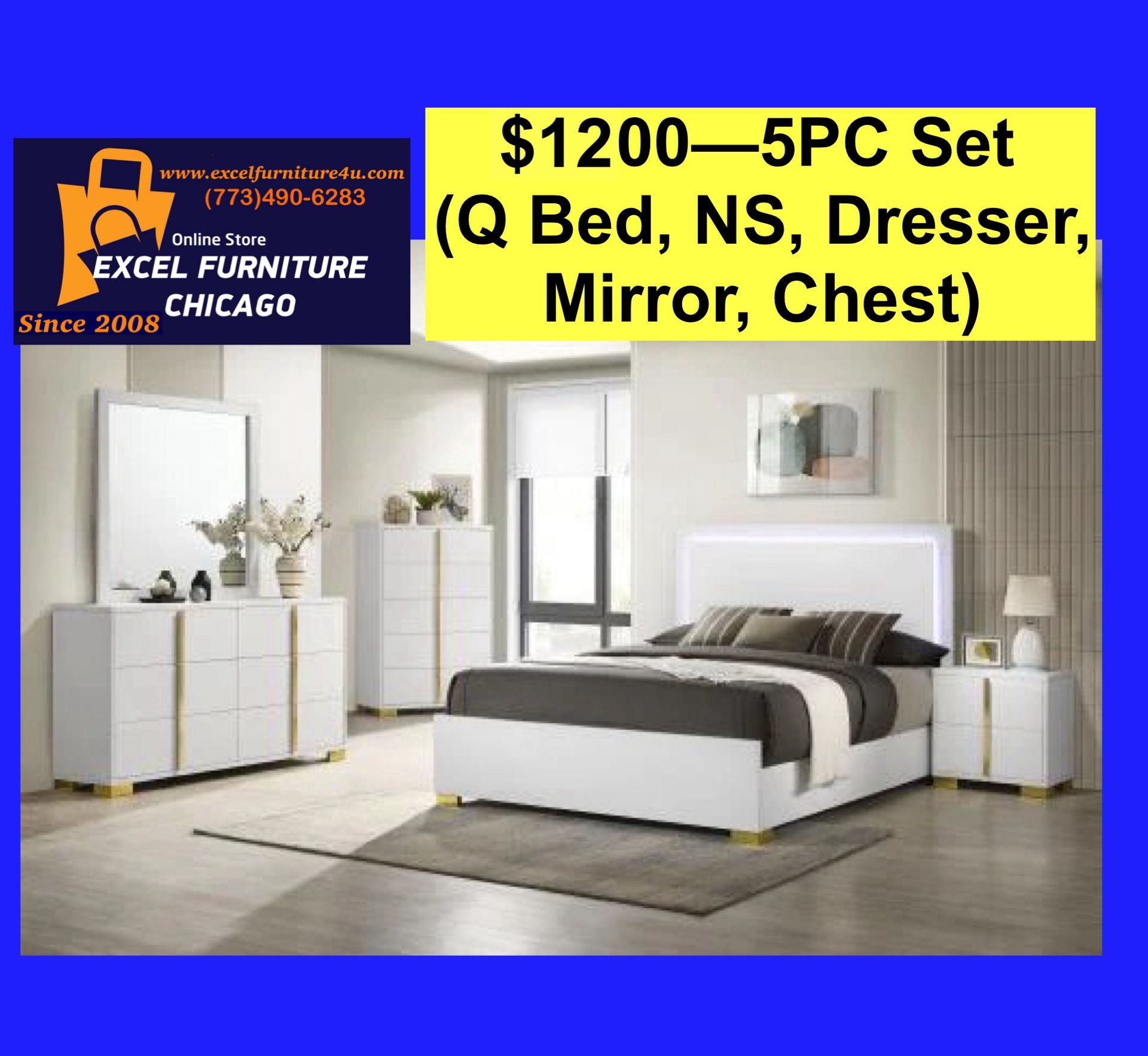 πΊ FREE DELIVERY πΊBrand New 5PC Queen Size Bedroom Set ( Queen Bed, NS, Dresser, Mirror, Chest)