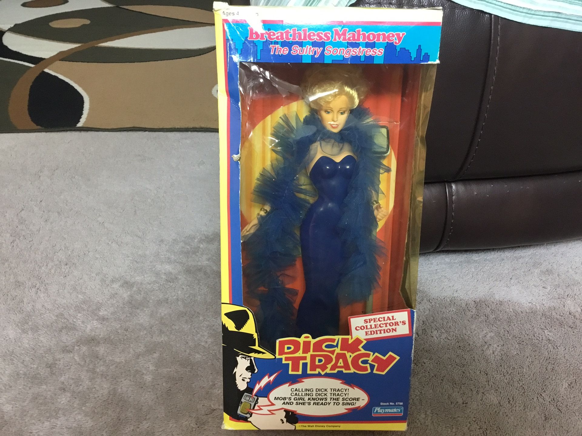 Playmates Disney Dick Tracy Breathless Mahoney the Sultry Songstress Action Figure Doll Special Collector’s Edition Made in 1990 Ages 4 and up A full 14” tall with poseable arms Beautifully styled rooted hair Microphone and Boa included Articulation in arm/shoulder and head (shown in pictures) The height of the Doll is 14 inches She’s wearing bracelets (that don’t move and aren’t removable) Includes: Breathless Mahoney Doll, a Blue Boa, and a standing microphone The box is a bit beat up Used