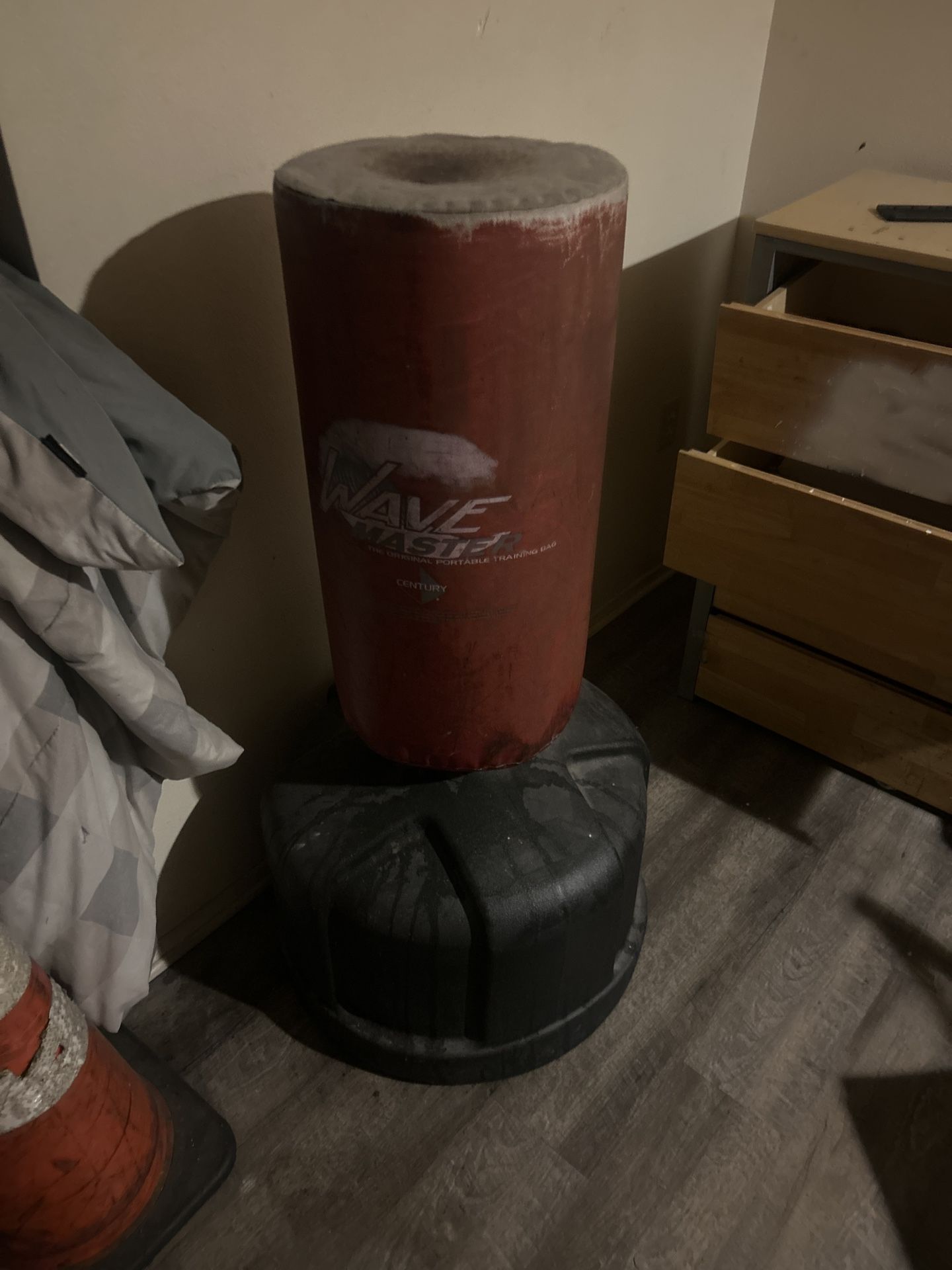 Selling a Century Wavemaster Freestanding Punching Bag β perfect for boxing, MMA, kickboxing, and general fitness training. Adjustable height, durable padding, and a sturdy base for stability. π Features: βοΈ Durable high-density foam with a tough vinyl cover βοΈ Freestanding design β no need to mount it to walls βοΈ Large base can be filled with water or sand for extra stability βοΈ Great for home training β build strength, endurance, and striking power π οΈ Condition: Used but fully functional. Some surface wear (as seen in pictures), but no major damage or structural issues. π Pickup in Downtown LA (DTLA) β Can help load it into your car. π¬ Message me if interested β serious buyers only! First come, first served. No holds without deposit.