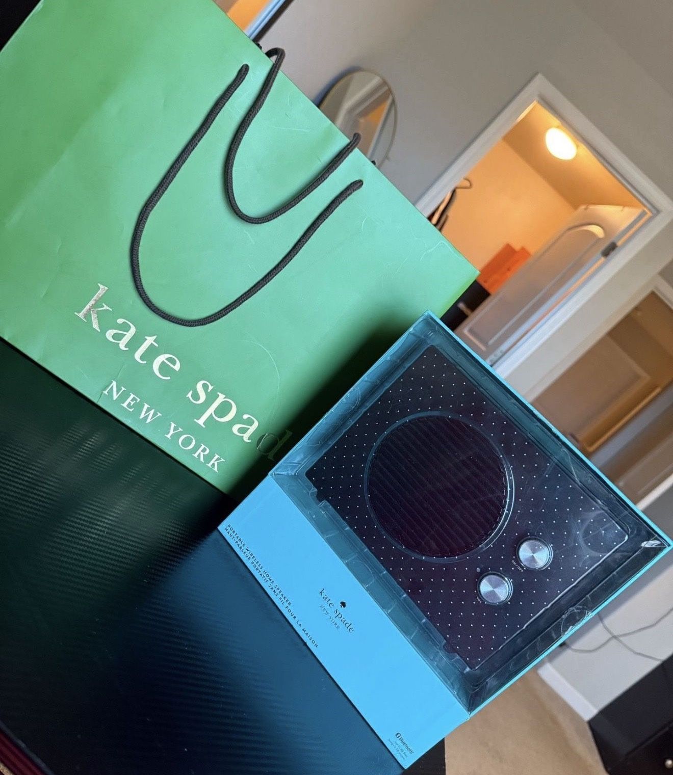 Kate spade Bluetooth wireless speaker. Excellent good condition. Perfect for a gift. Comes with box and charger and paper bag