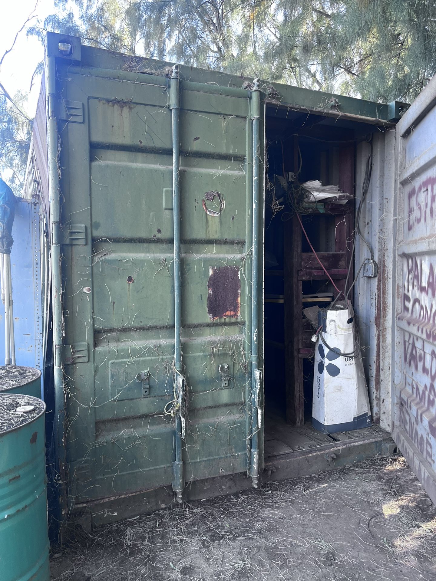20ft Storage Container with Built-in Shelving - Solid, DRY and secure 20ft storage container for sale. This unit has been used for [Workshop/Tool Storage] and is perfect for a job site or backyard shed. • Interior: Features heavy-duty wooden shelving and solid flooring. It has remained dry through the seasons. • Condition: Weathered exterior with some surface rust and a previous patch (shown in photos), but structurally sound. • The Doors: The doors are very tight and currently difficult to close/latch. This is likely due to the unit settling on soft ground; it will need to be leveled or the hinges greased upon relocation. • Side Dent: There is a significant dent on one side (clearly shown in the photographs) and some warping of the exterior panels. It is purely cosmetic and does not affect the structural integrity or the interior dry-seal. • Transport: Sold AS IS , where-is. Buyer is responsible for professional transport and removal. 900 OBO