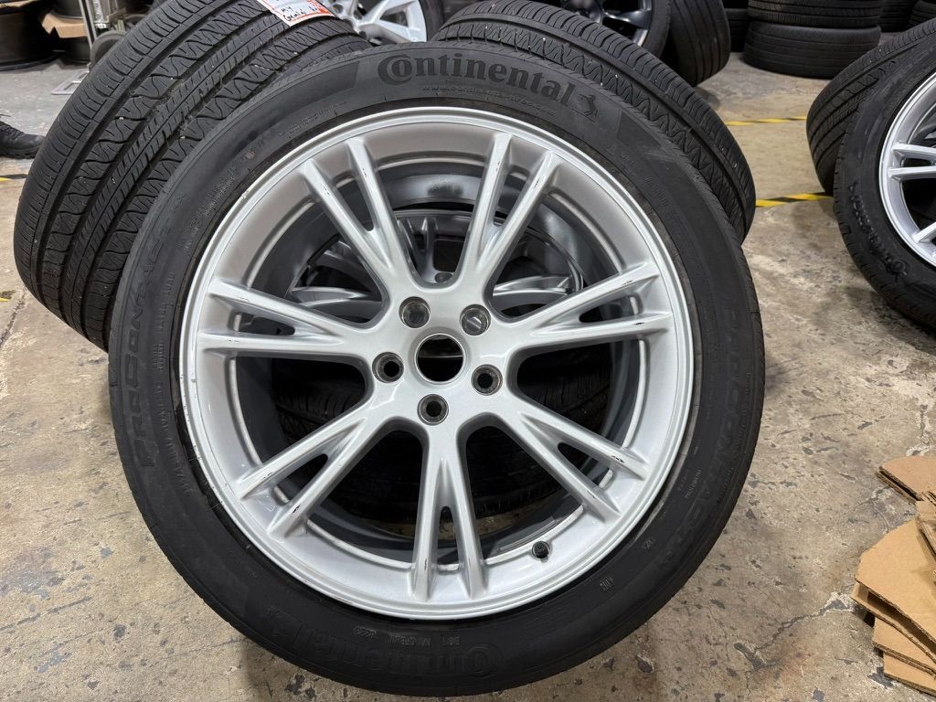 OEM 19" Tesla Model Y Wheels With 255/45/19 Continental All-Season Tires Off 2023 Tesla Model Y. TPMS sensors included. No bend no crack. each rim has cosmetic wear / rash marks. see photos up close. COMES WITH HUB AERO CAPS Model Y 19" Gemini Wheel & Pirelli All-Season Tire Package with noise cancellation technology. Rims & Tires Are excellent, No Curb Rash On Wheels, Tires Have 65-70% Tread. Driven approx 5k miles FIRM ON PRICE