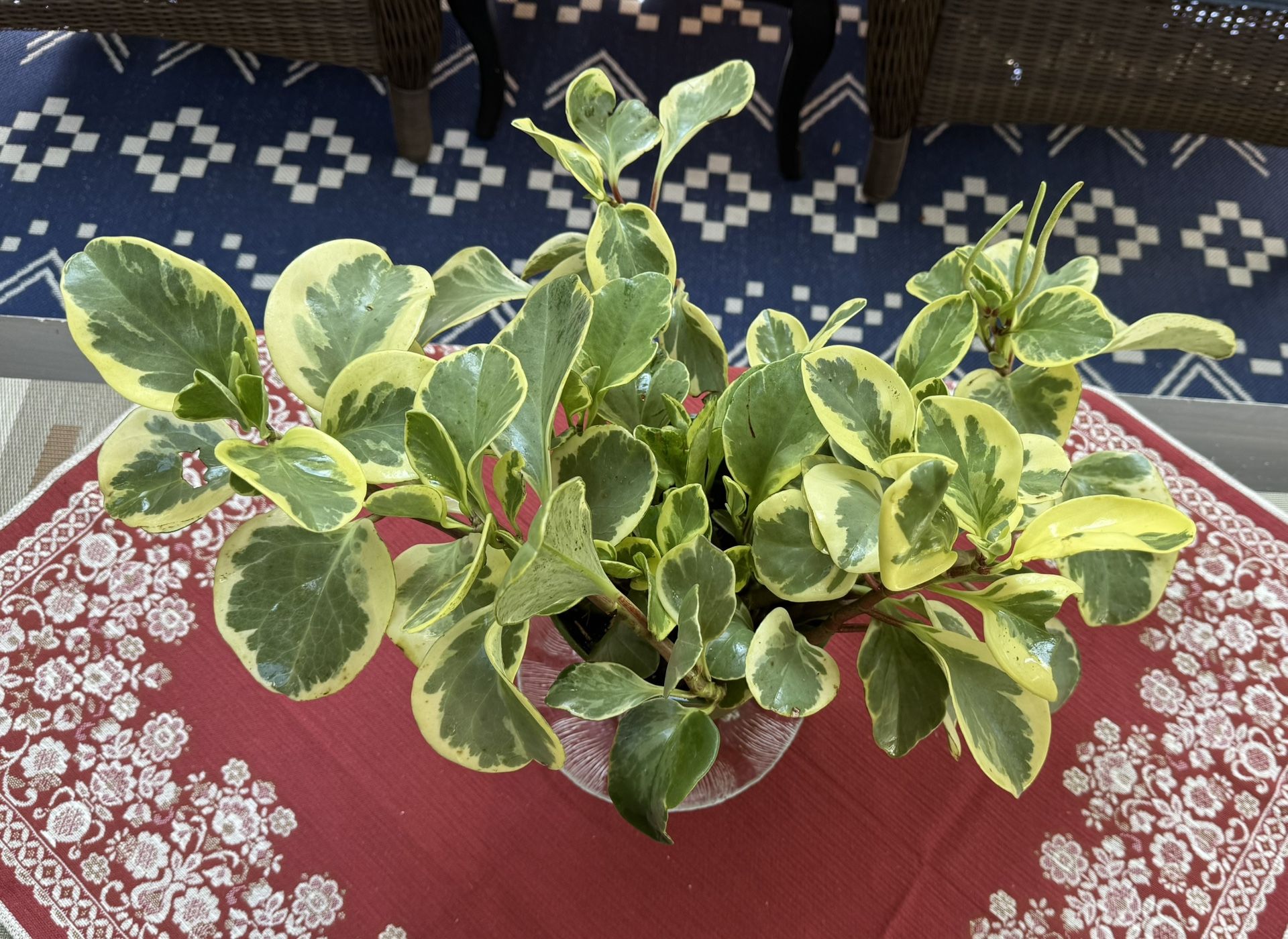 Large healthy peperomia variegata also called baby rubber plant. Very easy growing and brightens up your home in winter. Propagates easily from cuttings. Pickup in Naperville