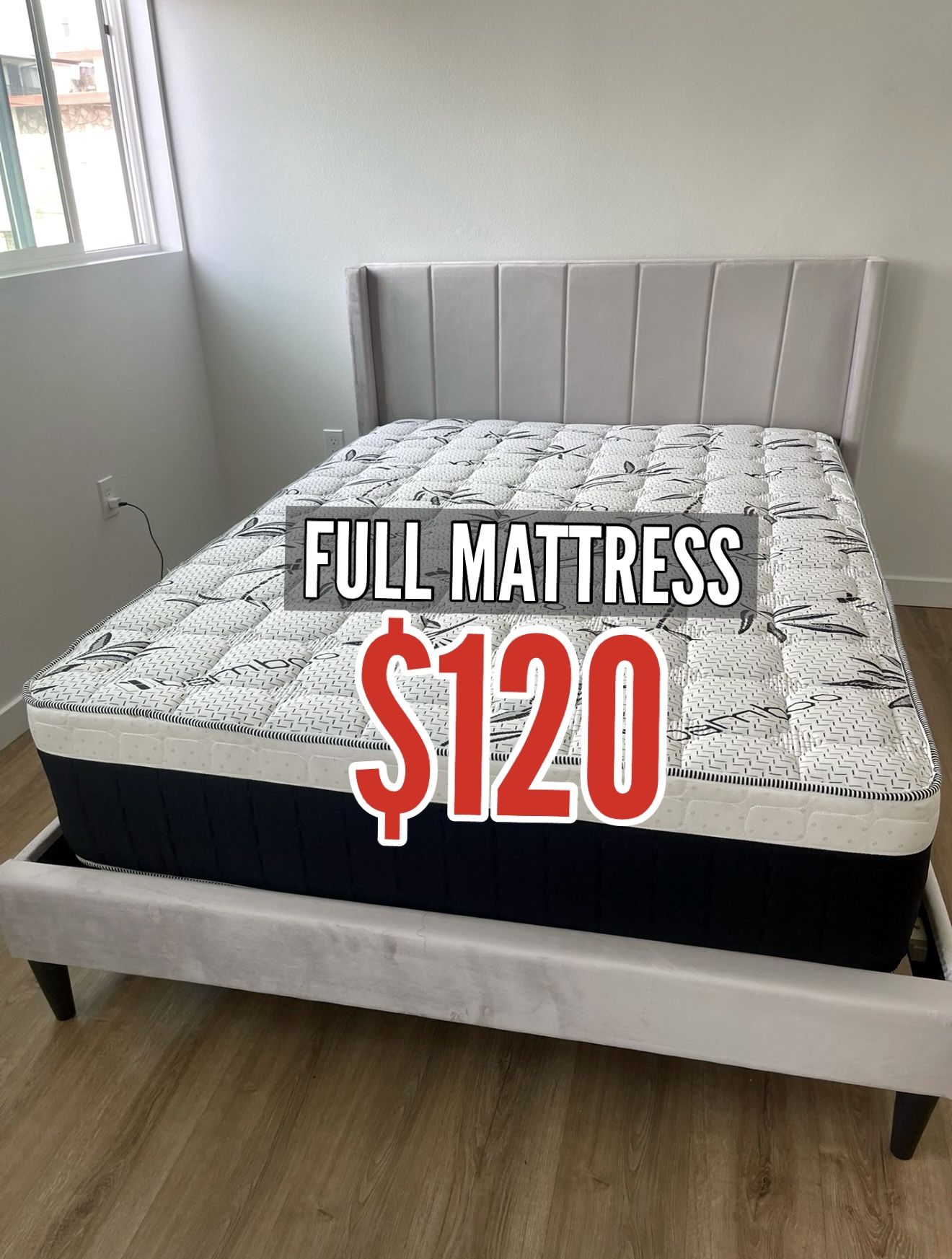 QUEEN MATTRESS ONLY $140 $200 with box spring FULL MATTRESS $120 $180 with box spring $20 Delivery fee