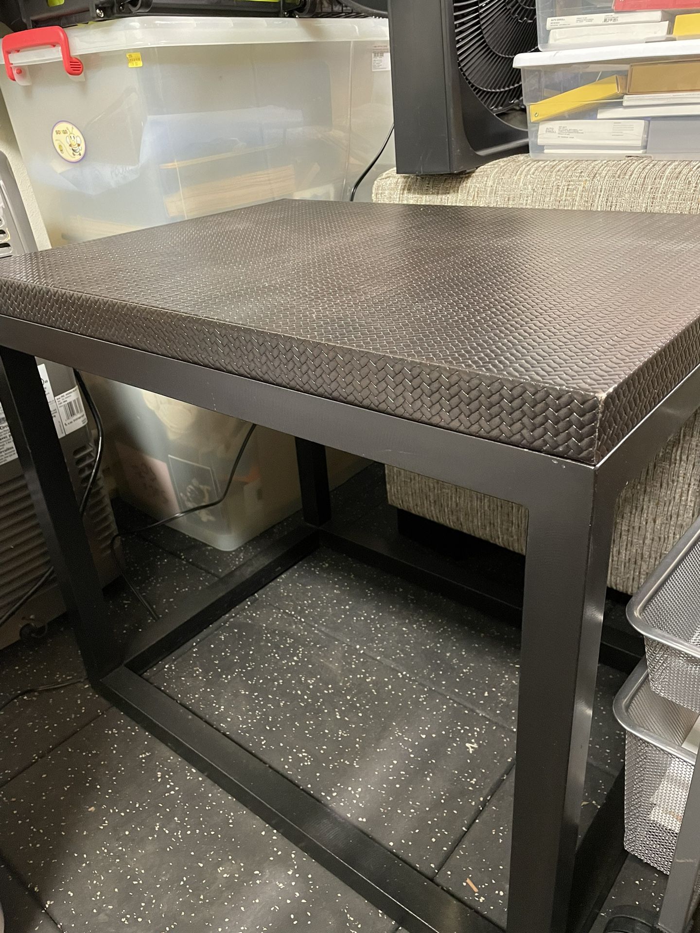 28”Lx 20”Wx 24”H Drake pewter metal finish with espresso woven synthetic top