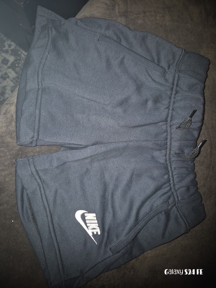 Nike cotton Shorts brand new with tags P These are youth kids Small. These are black black. Not faded. They have side pockets and a drawstring waist. They have embroidered Nike