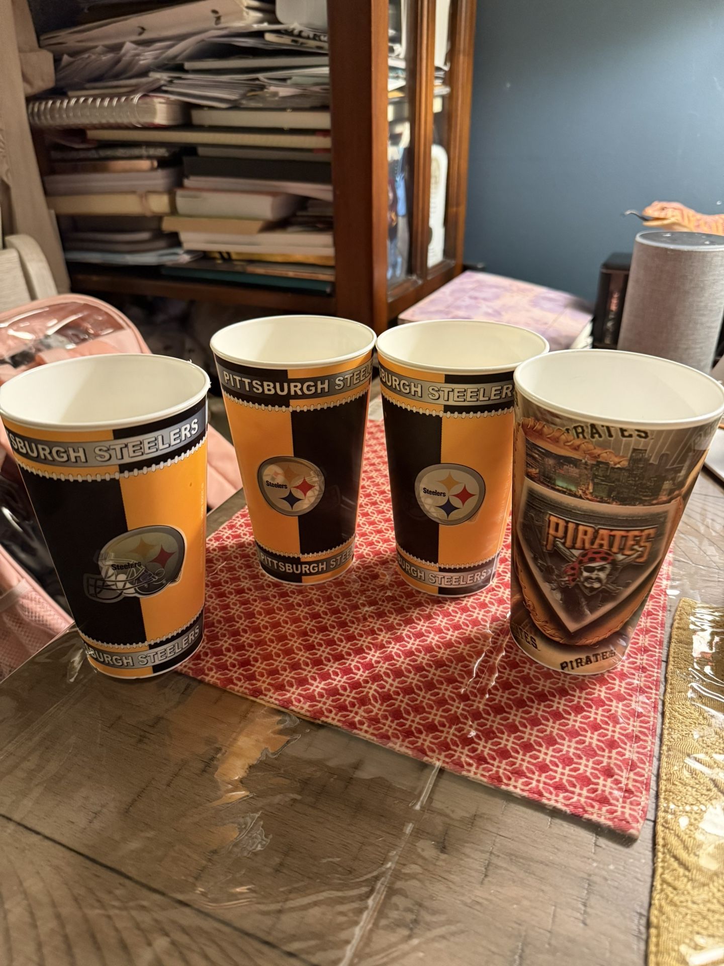 4 bonitos vasos para Tu collection STEELERS, todos por un solo precio de $20