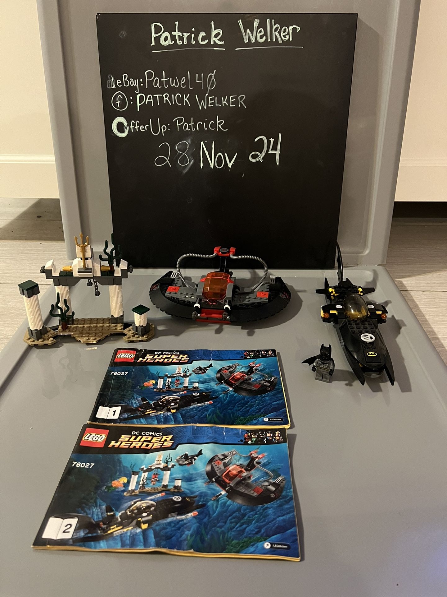 76027 LEGO Justice League Black Manta Deep Sea Strike This is a used Lego set that was built close back to its original design. This Lego set is being sold as-is. I’m happy to provide any additional pictures or answer any questions regarding this Lego set. The set was played with many times by my children, the set might be discolored or stained because of the years of love they received. *missing three mini figures