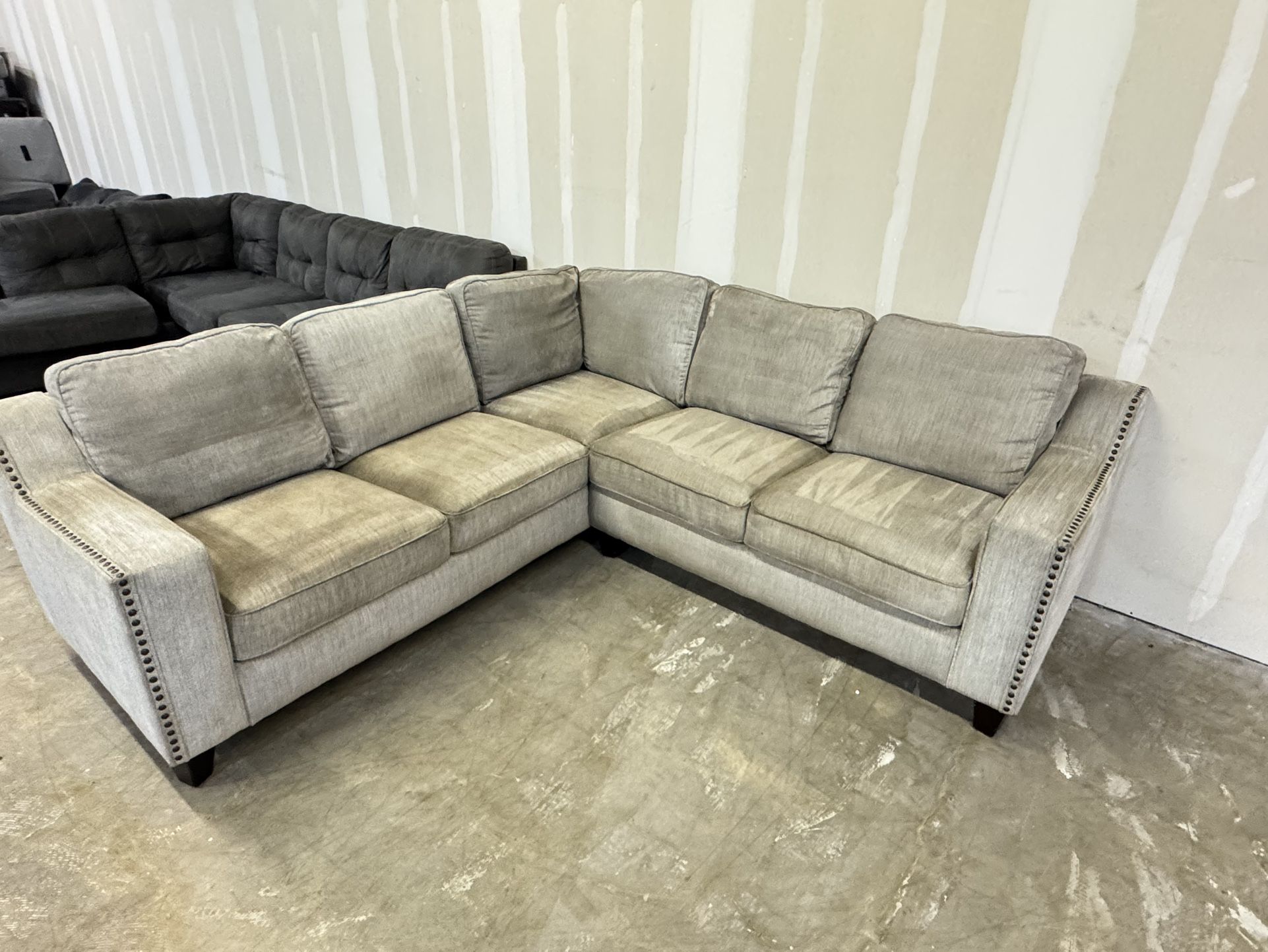 Light studded sectional that’s very nice with no tears or damages! Needs a light clean but is smoke free! *Can Deliver **Payment upon delivery/pickup, be cautious of deposit scams
