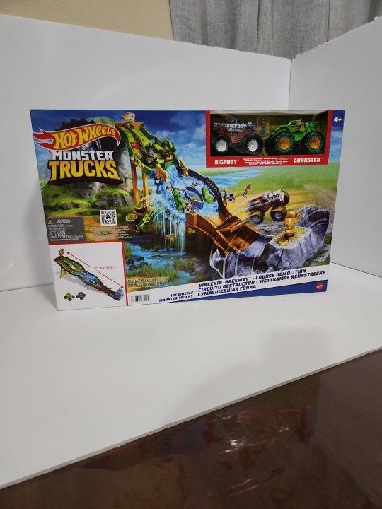 Hot Wheels Monster Trucks Wreckin' Raceway Track Playset Bigfoot Gunkster