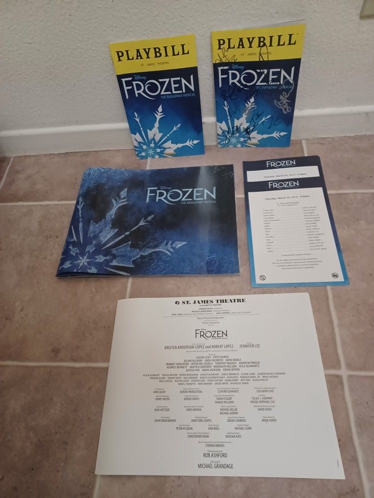 Disney Frozen the Broadway Musical - Cast Autographed Playbill plus Picture Book, Program, Cast Lists, and Extra Playbill - St. James Theatre Price includes all. Excellent condition. Thank you Normal Heights San Diego 92116