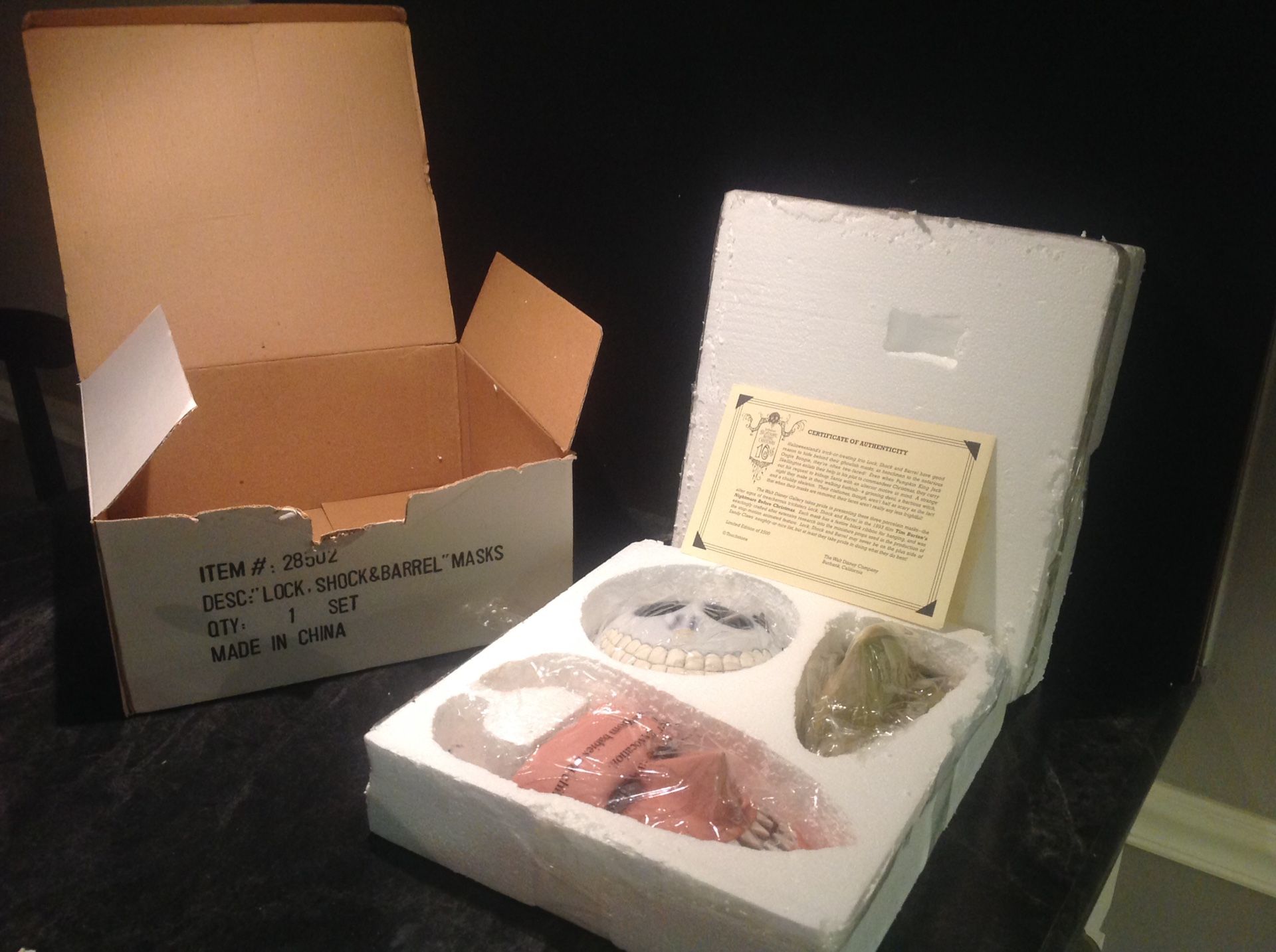 Disney Tim Burton's Nightmare Before Christmas Set Of 3 Porcelain Masks Lock Shock & Barrel Certificate Of Authenticity 2003 Brand New Boxed