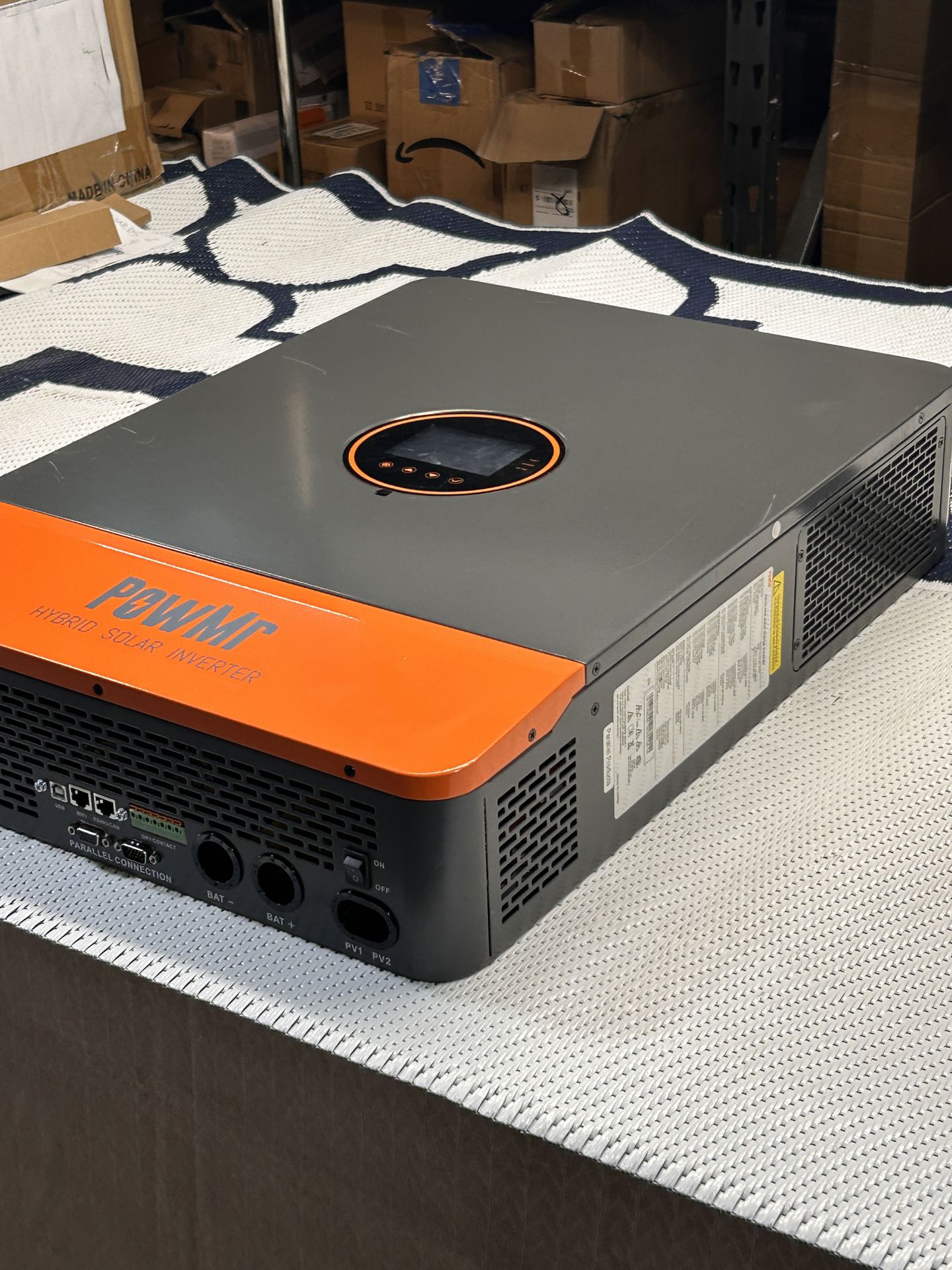 PowMr Hybrid Solar Inverter – Model POW-SunSmart 10KP Sold as shown in photos • No guarantees on full solar compatibility unless tested • Buyer responsible for proper installation and setup • Verify this model fits your system before purchase High-capacity 10,000W inverter designed for off-grid or backup power systems. Supports split-phase output for residential setups and works with 48V battery systems. ✅ 10,000W (10KW) output ✅ 48V battery system ✅ Dual MPPT solar inputs (2 PV circuits) ✅ Split-phase capable (120V/240V configuration) ✅ Parallel capable (expandable system) ✅ Built-in charger & solar controller 10KW 48Vdc All in One Inverter 110/240Vac Split Phase Supports 6 Units in Parallel 10000W Solar Inverter with Pure Sine Wave Output Meet high energy demand for 120V/240V AC home and small businesses with the 10,000W solar inverter. Pure sine wave output delivers stable, clean power, efficiently managing energy flow between solar, battery, and grid. 120V/240V Split Phase/ Single Phase Output Supports both single-phase (100–120V) and split-phase (120/240V) operation, with adjustable voltage per phase (100V, 105V, 110V, 120V, or 127V), ensuring compatibility with a wide range of appliances. Dual MPPT Solar Charge Controllers Achieve 99.9% tracking efficiency with 200A(100*2) MPPT charge controllers, separately managing 5,500W of solar input each. Maximizes energy harvest under changing conditions and complex installation layouts. 48V Battery Fast Charging & Full System Protection Supports fast charging up to 200A for most battery types, including LiFePO4, lithium-ion, lead-acid, sealed, and user-defined batteries. Equipped with CAN, USB, and RS485 communication and complete protection against short circuits, over/under voltage, overload, and reverse current. Support Up to 6 Units in Parallel Connection Supports up to 6 inverters in parallel for a combined output of up to 60,000W. Parallel configuration enables two-phase or three-phase 208V output for larger systems and scalable commercial or industrial power applications.