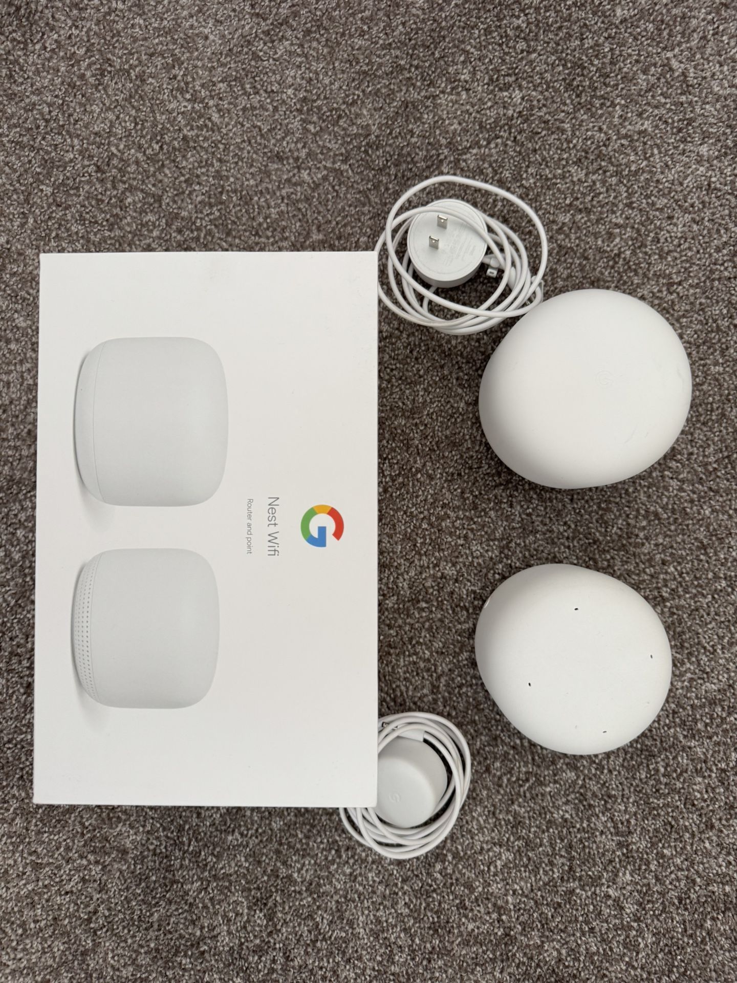 Selling a used Google WiFi router and access point in excellent working order.Includes the router, access point, and original power cords. Feel free to message with any questions!