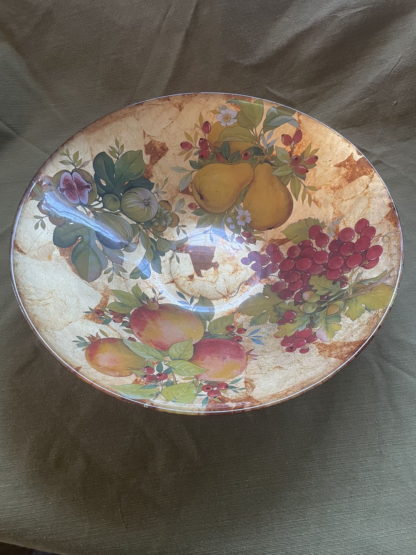 Hand painted lacquered bowl. Imported from Turkey. 14” diameter.