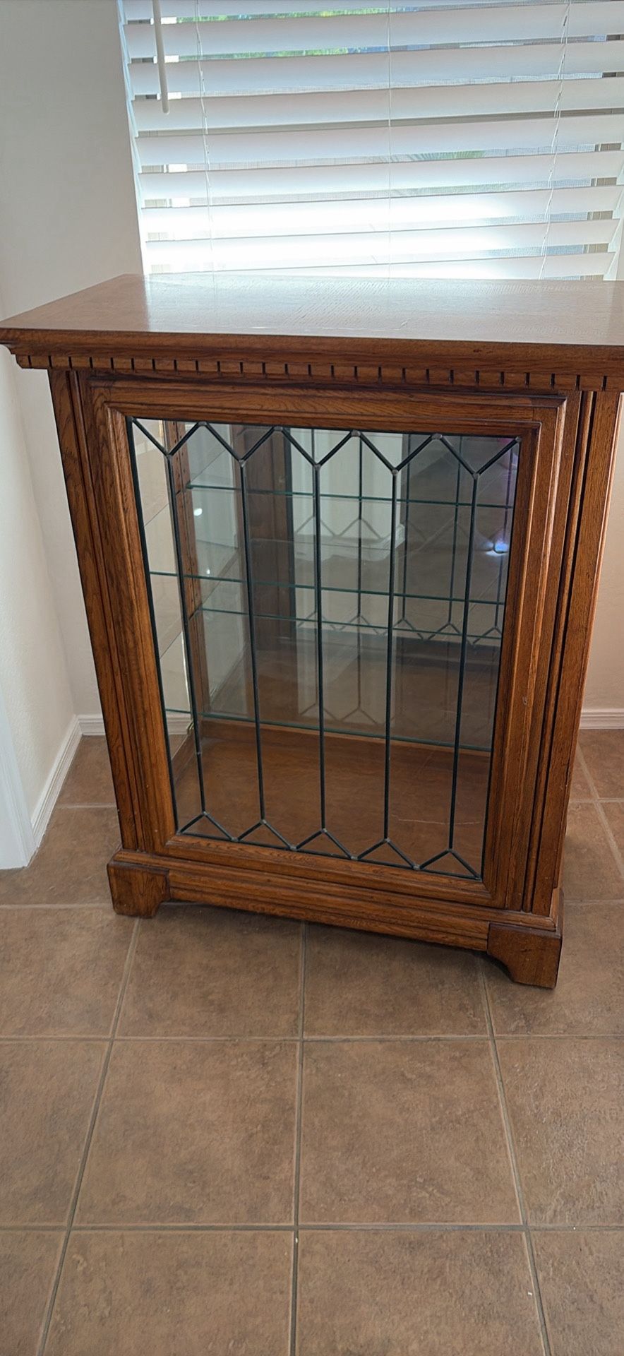 Armor oak with glass shelves doors on side with a light inside that opens up 42 height 18 inches depth and 34 1/4 length