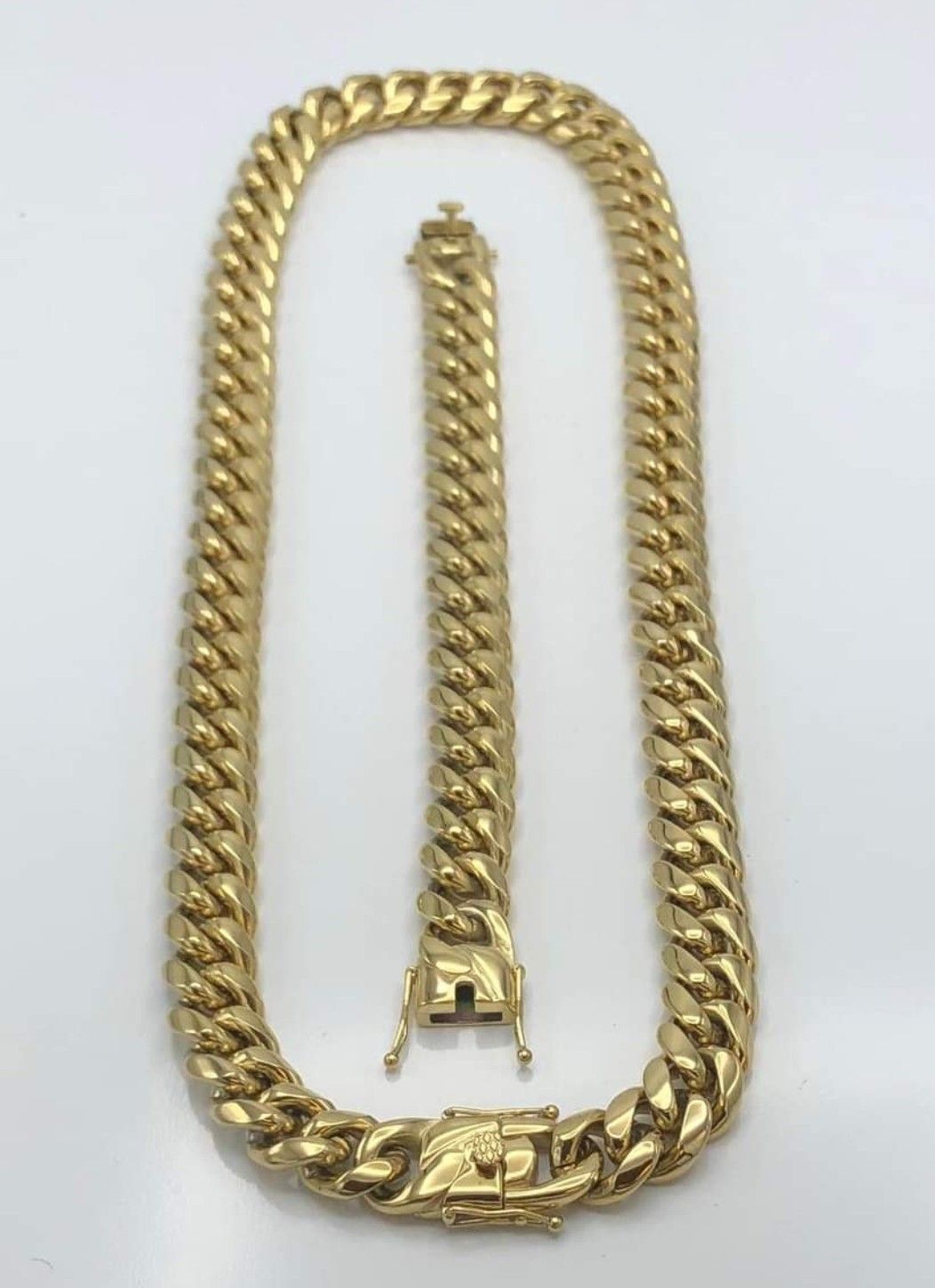 14MM Cuban Set 14K Gold Plated Doesn't Loses Color