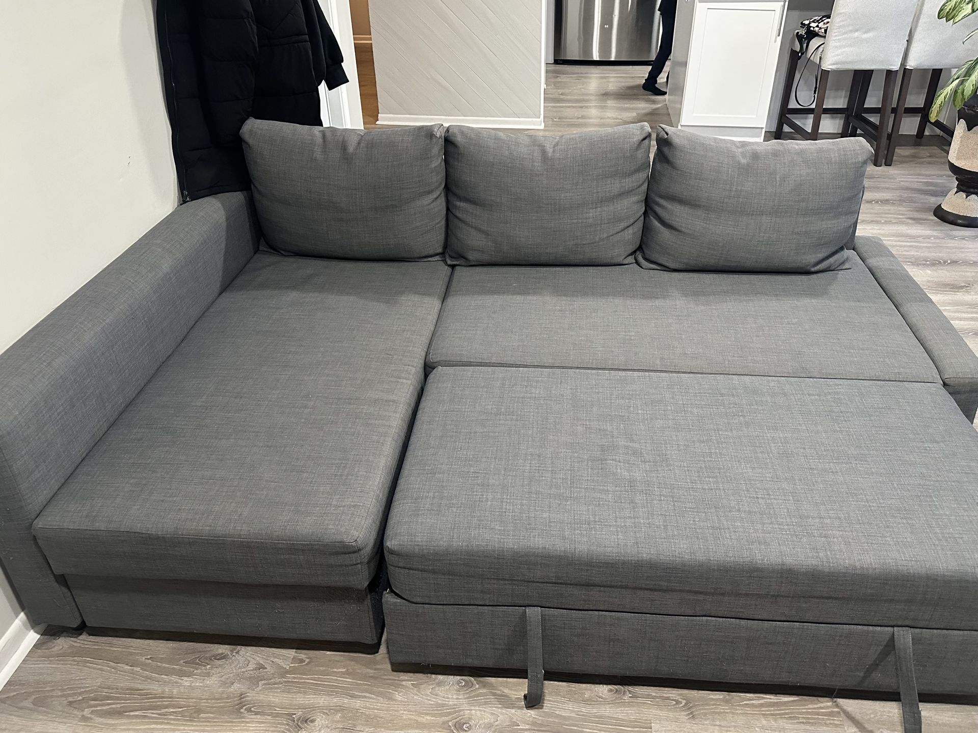 Sleeper sectional with storage room. I’ve had it for years and it’s still in good shape. From ikea asking for $400 obo