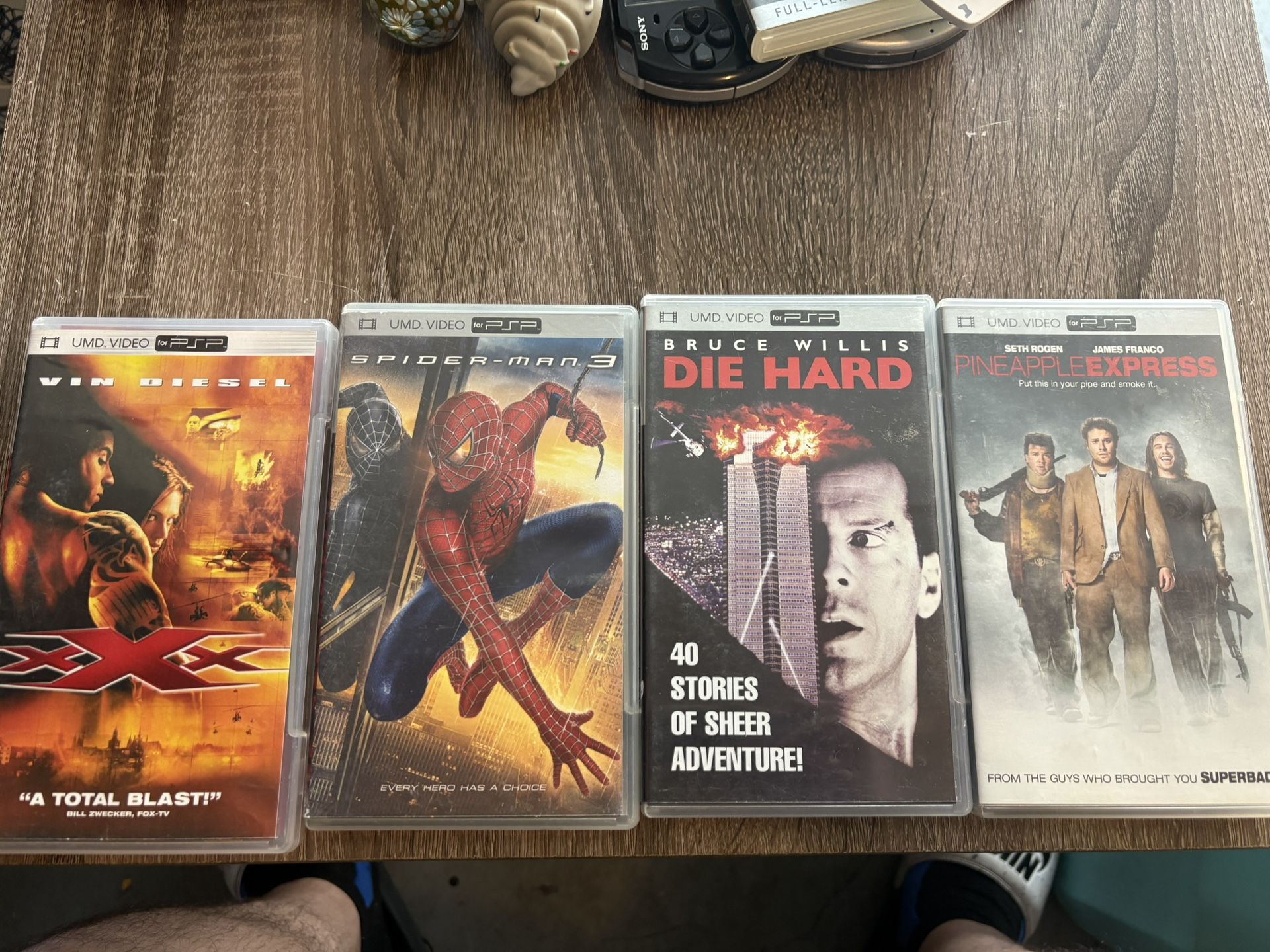 PSP with movies and game they need to be fixed a bit grey screen is a bit off and black one won’t stay turned on for long but screen is fine