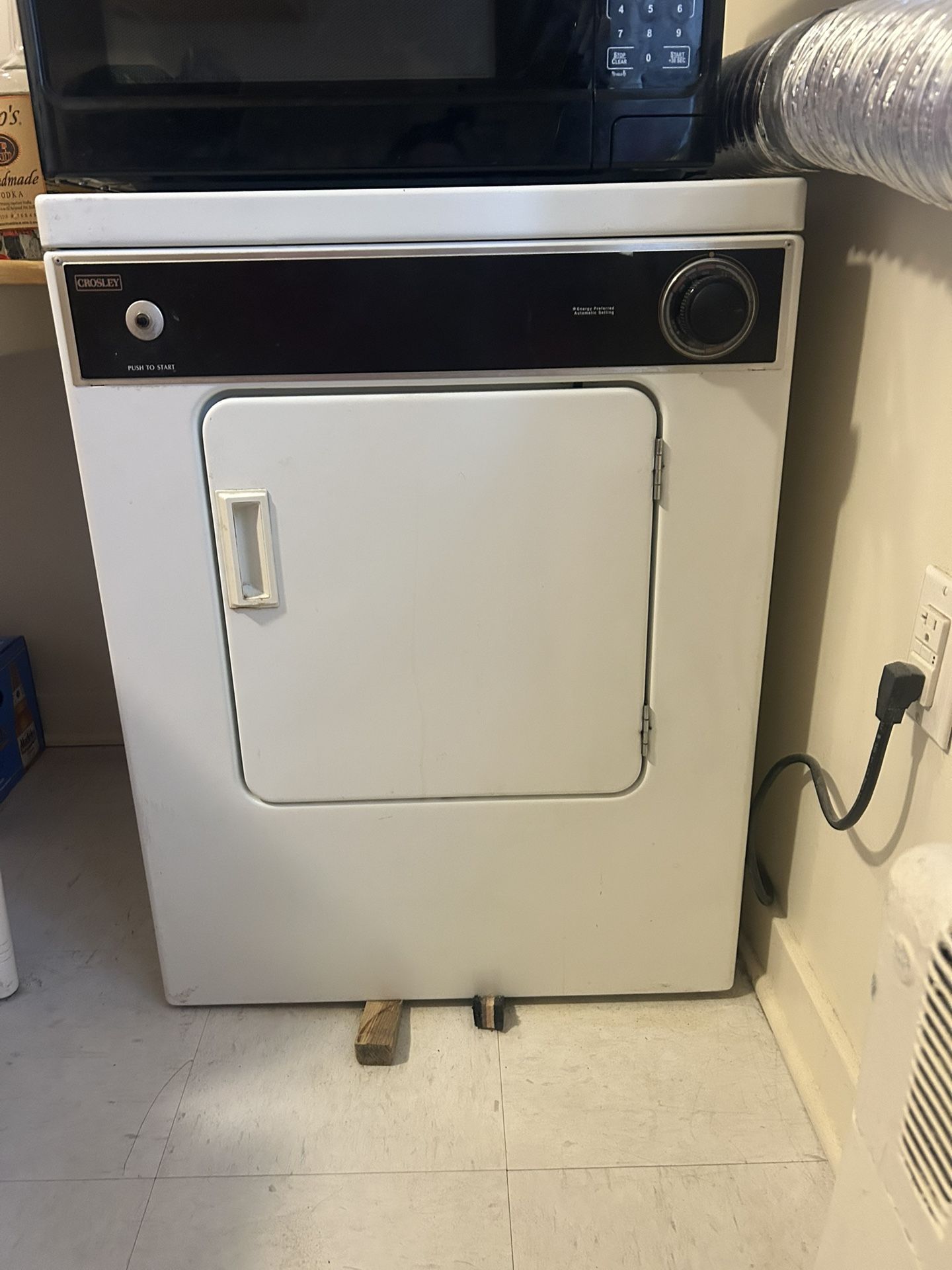 Apt. Size Crosley Electric Dryer W 24in x H 31 in x D 20.5 in • Crosley clothes dryer, featuring a simple "Push to Start" operation mechanism. • Compact front-load design suitable for apartments or smaller laundry areas. • Simple manual dial timer and a dedicated push-to-start button. • Energy Preferred Automatic Settings for efficiency. • Designed for standard clothes drying routines with basic cycle options. Estate Sale / Pick up Bayonne $200