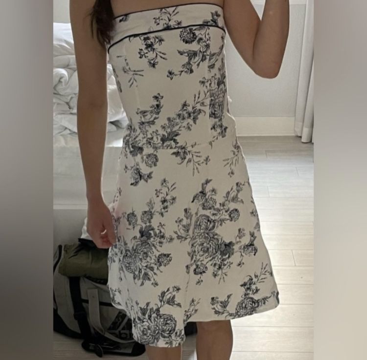 Teeze me white and blue strapless casual dress, Size 3 vintage looking toile design print. This dress would look great with a Jean jacket