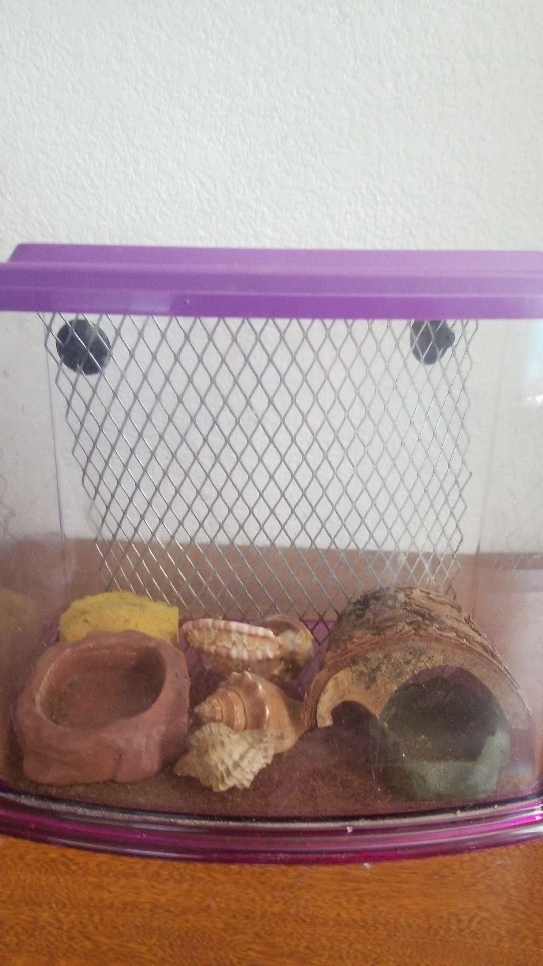 $25 Hermet Carb Habitat house All you need is a new crab ours passed after 9 years!! Small med and large shell Water pond Water sponge Climbing net Shelter bridge Food trey Cage/house