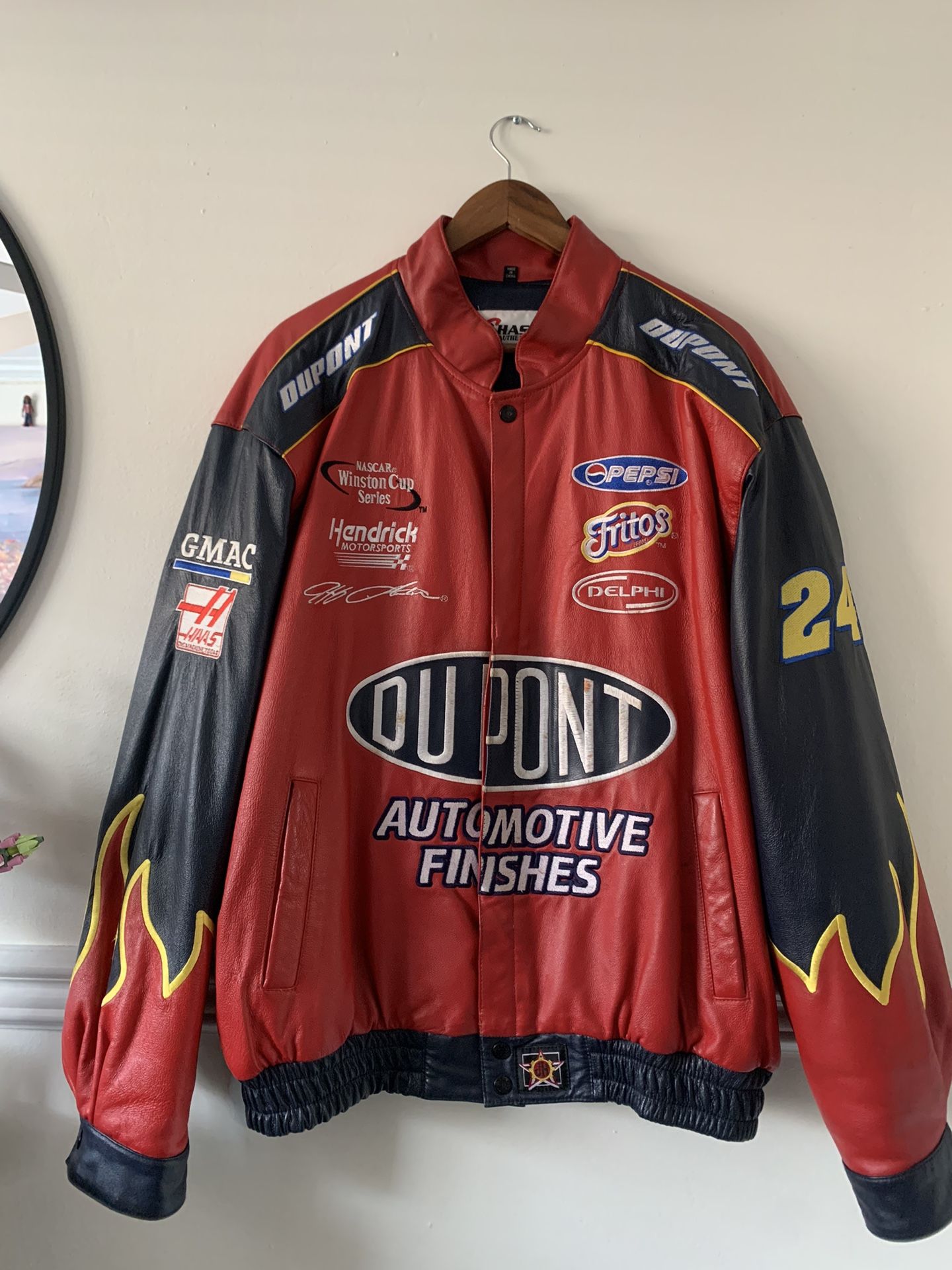 Firm on price no low ballers !! perfect condition besides stains on lettering. All leather weighs like 10 pounds fits like a Large/XL Preferred someone to pick it up in person