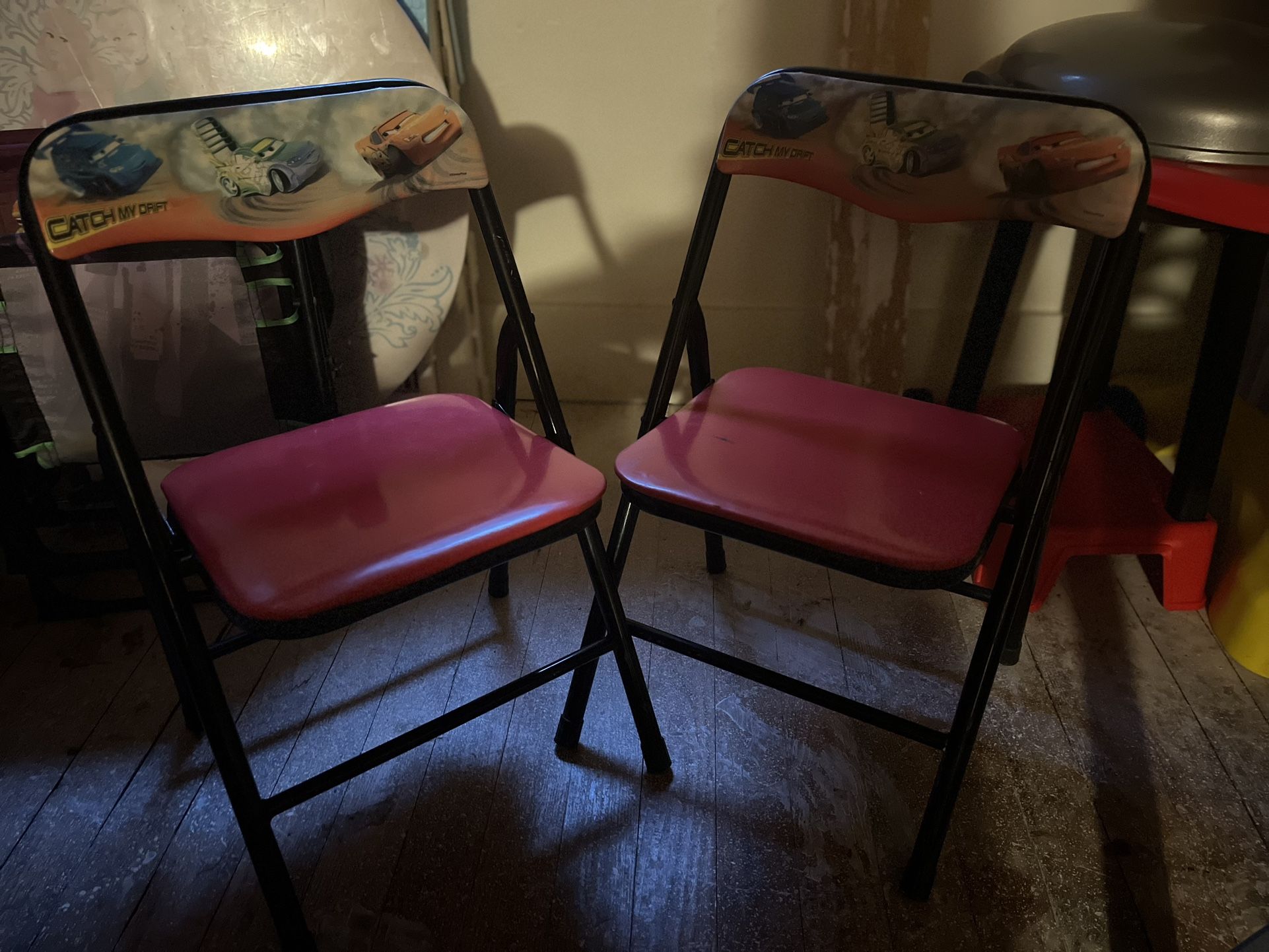 Set of 2 kids metal folding chairs. Heavy duty! Will meet locally