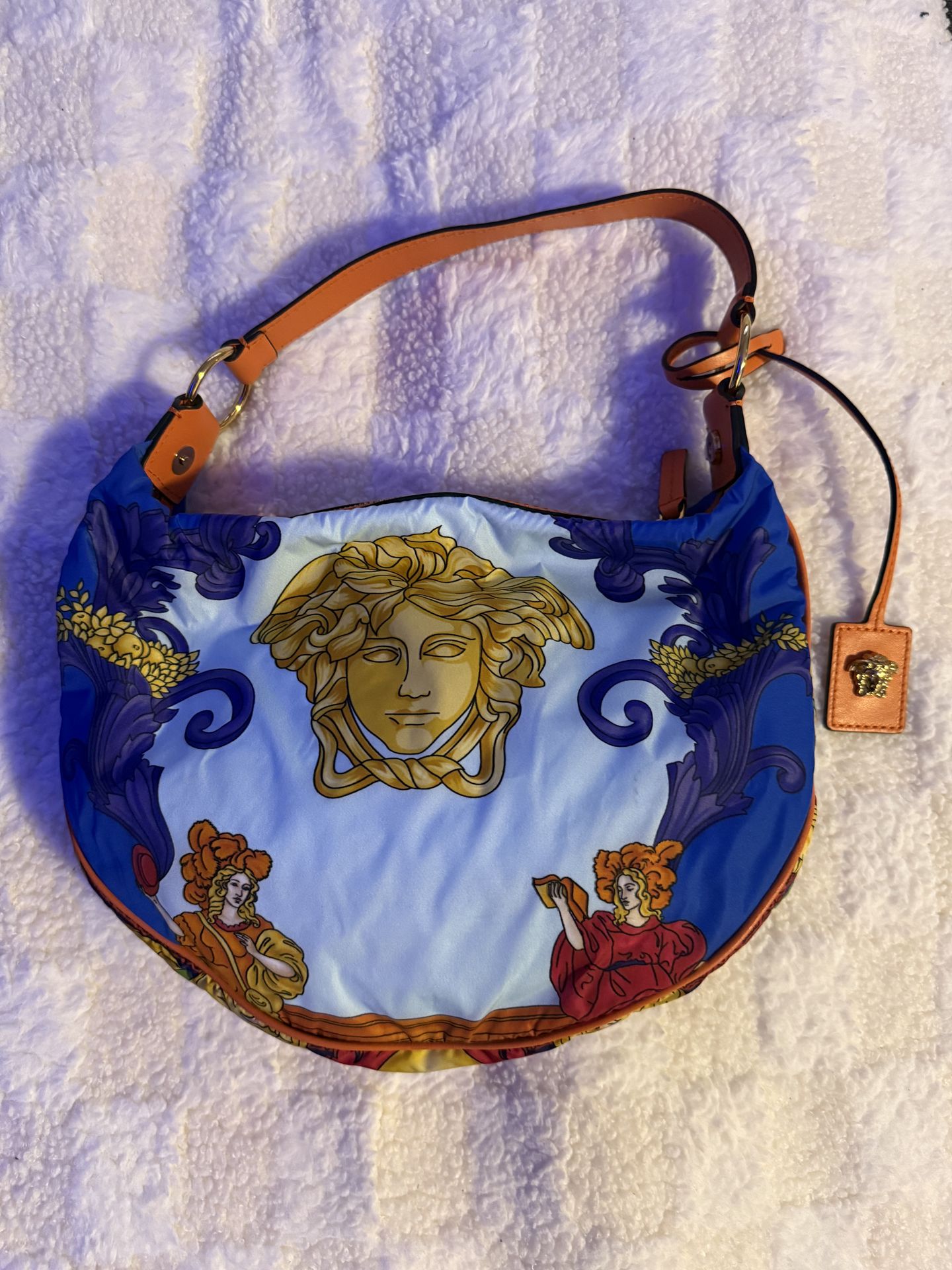 VERSACE Nylon Calfskin Medusa Renaissance Print Hobo Bag Multicolor