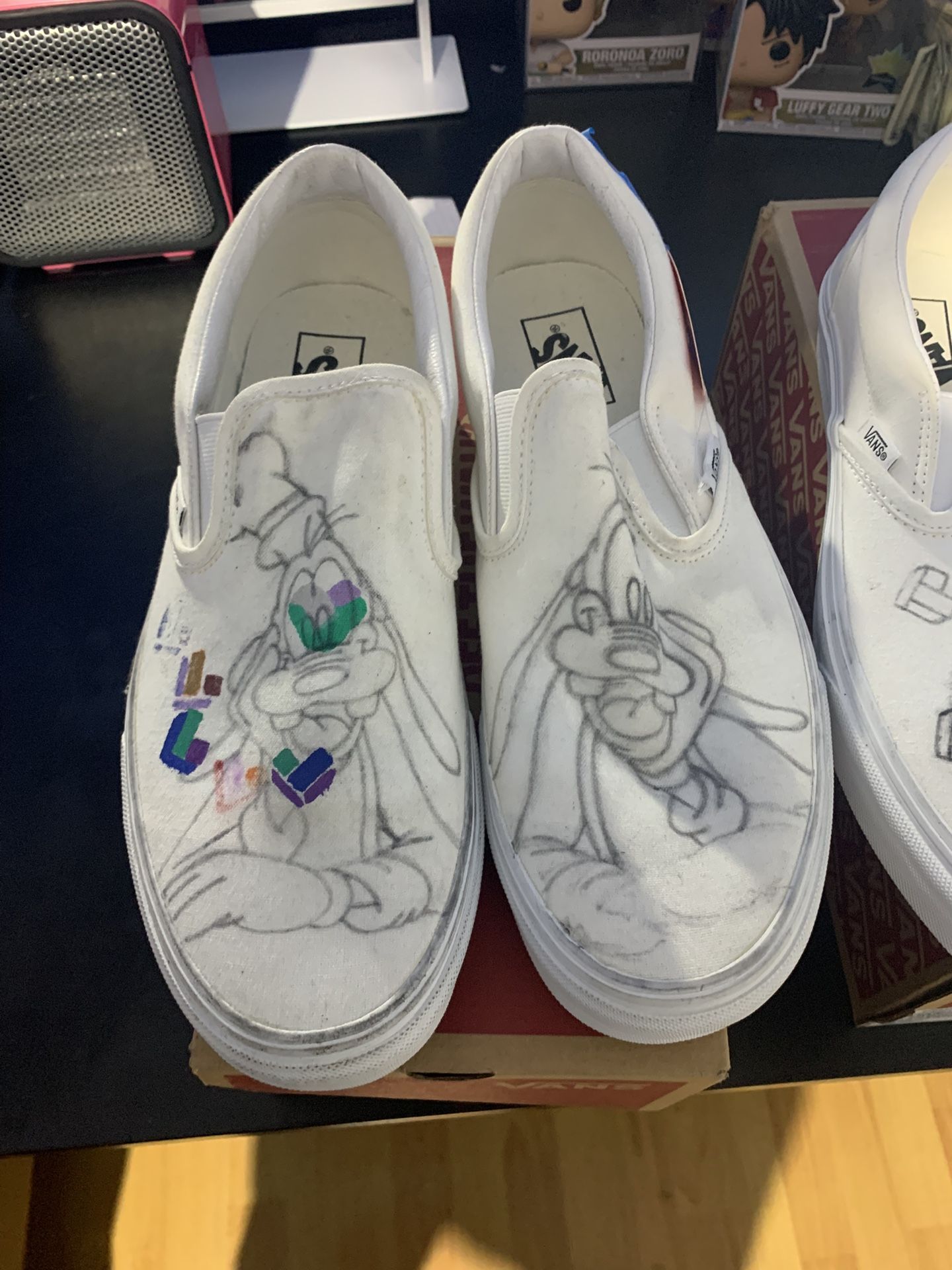 2 pair of vans never worn, new! Only used to draw on them but never tried them on $60 for both pairs Still have the boxes for them & tags are still attached