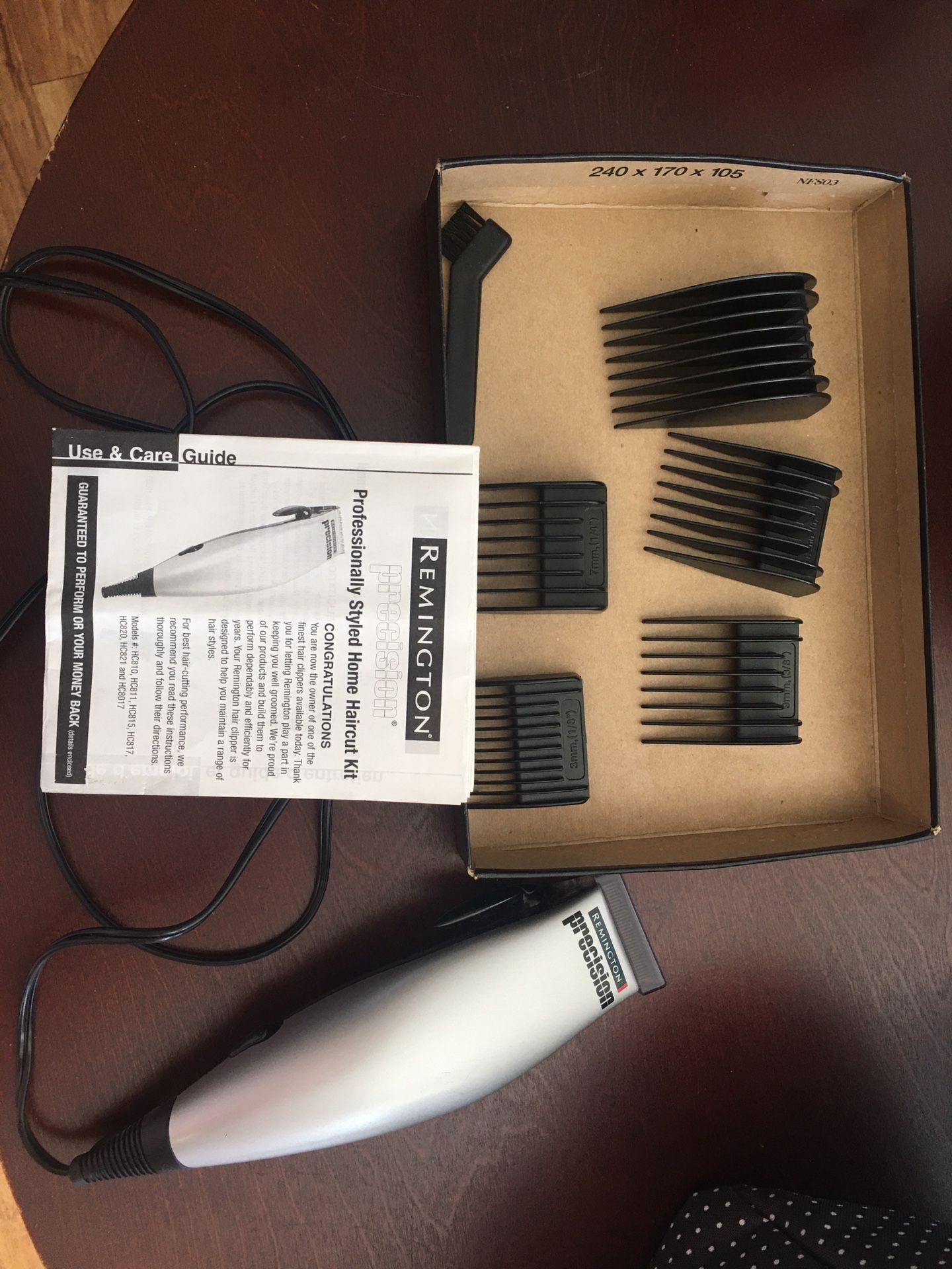 Professionally styled home haircut kit plus 1”, 1/2”, 3/8”, 1/4”, and 1/8” attachments