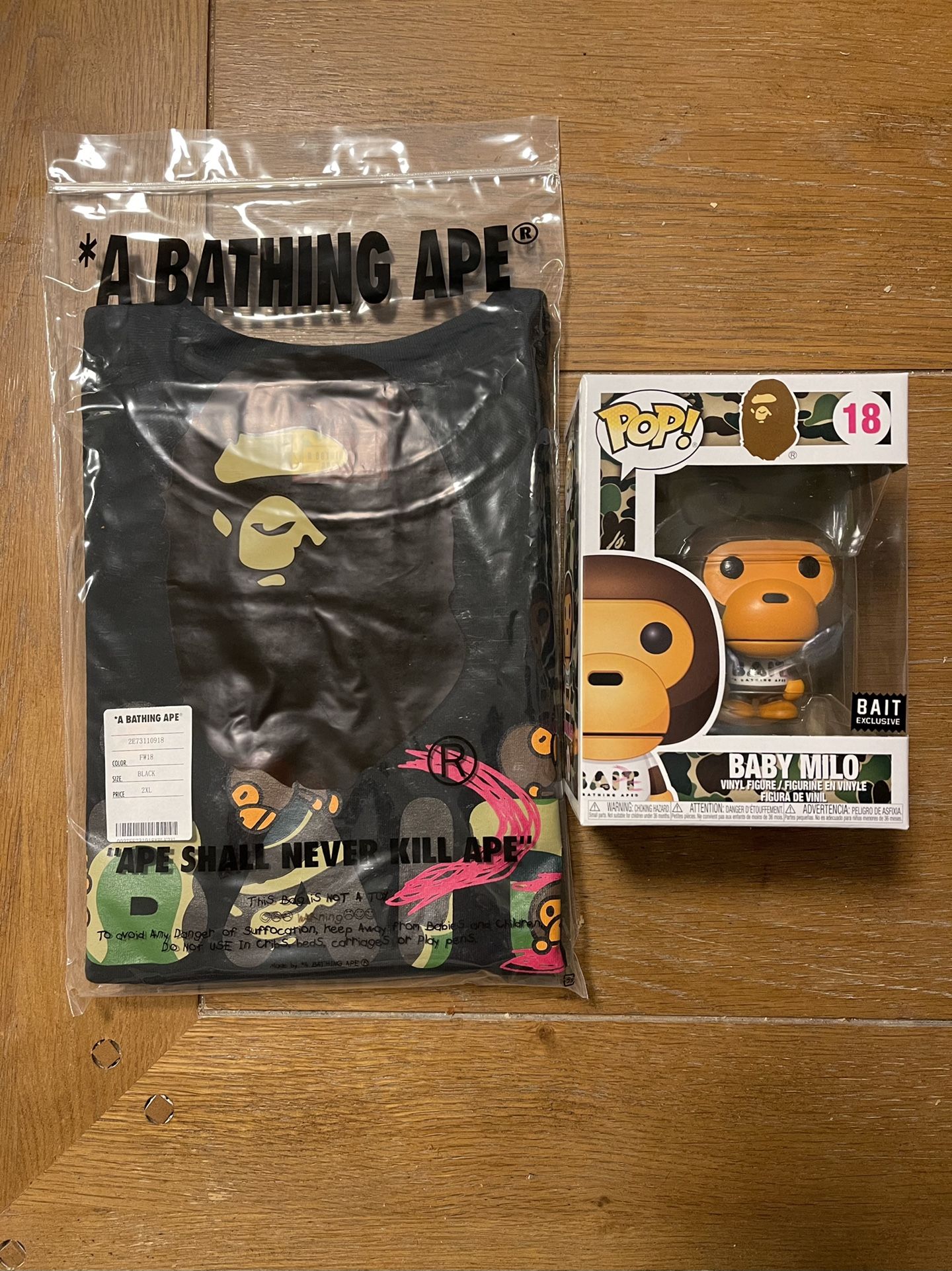 Bait exclusive Baby Milo Funko pop and tee bundle shirt is black XXL pop is mint and a protector will be included