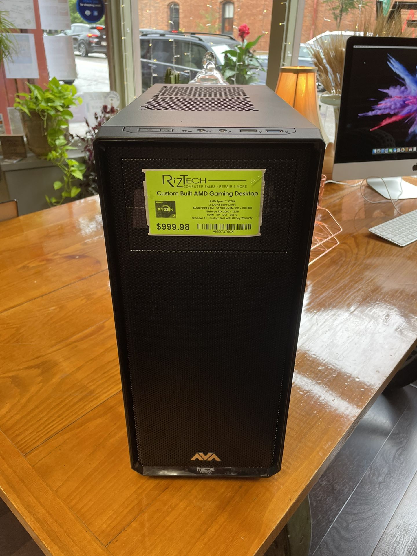Custom Built Gaming Desktop AMD Ryzen 7 3700x 3.60GHz Eight Core 16GB RAM 512GB NVMe SSD 1TB HDD 12GB GeForce RTX 2060 HDMI DP DVI USB-C Windows 11 Custom Built at RizTech. 90 Day Warranty SHIPPING NOT AVAILABLE, Curbside or in store pick up available Financing available. Text 31005 to 22642 to apply. INCLUDES: - Professionally Recertified computer with 90 Day Warranty on parts and labor unless otherwise noted, some nearly new computers will have the balance of the Manufacturer’s Warranty and will be noted; new and open box have Manufacturers Warranty - Power cord - FREE carrying case with any laptop purchase - FREE: We will transfer your files and photos from your old computer to any computer you buy at RizTech Available for pick up at our small local business RizTech in Medina, our shelves are FULL and we have hundreds of computers available plus tablets, iPads, iPhones, and a store full of top tech. If you haven’t heard of RizTech before, Google us. Our mission is to help our community save on tech and expect more. PLEASE READ 👇 Pick up only, we do not ship We are a small mom and pop shop, Google us! Hundreds of computers and a store full of new tech on shelves every day Monday - Friday 10-6 Saturday 11-4 Let me know if you want more pictures. Thanks. Call with questions. 215 S. Court Street Medina Ohio