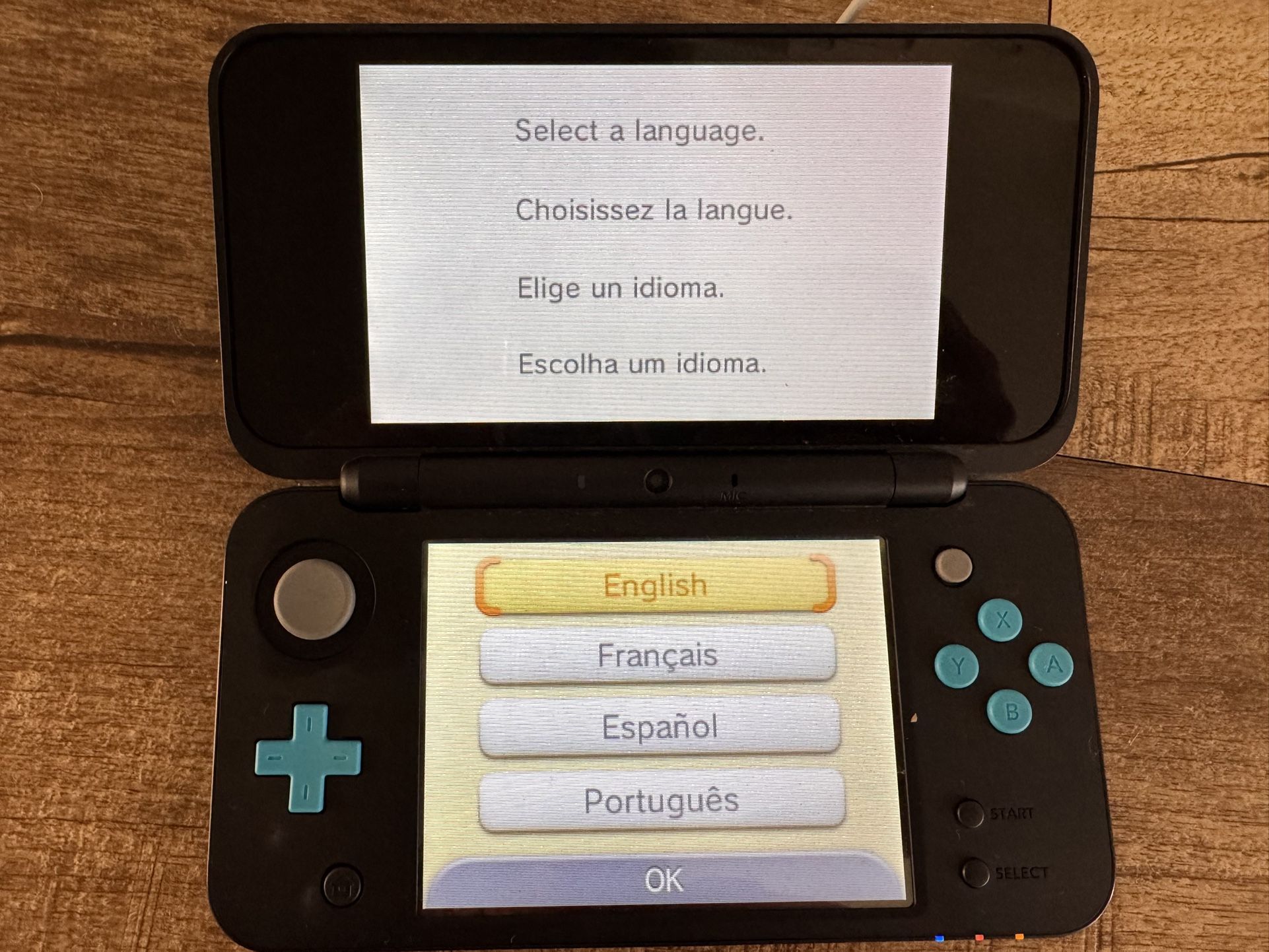Nintendo 2DS XL. Works great. 3 games included plus case and charger. The lines in the screen are due to the camera, not the device