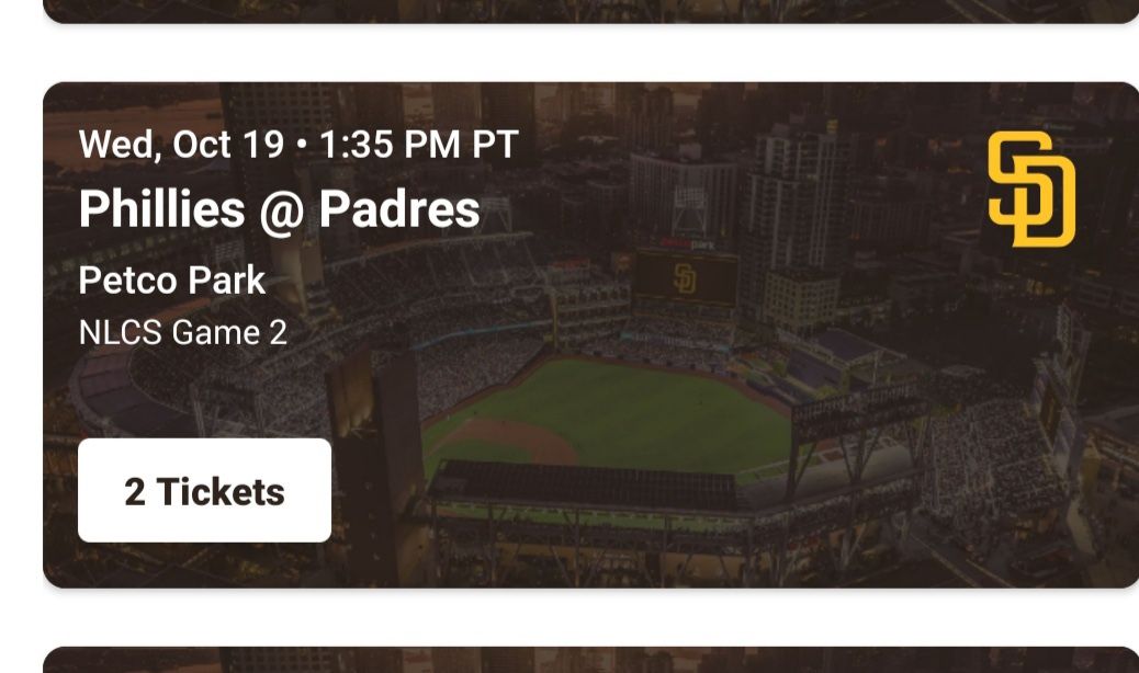 2 Padres tickets for tomorrow game. 10/19/22 Section 217. Great view 250 each