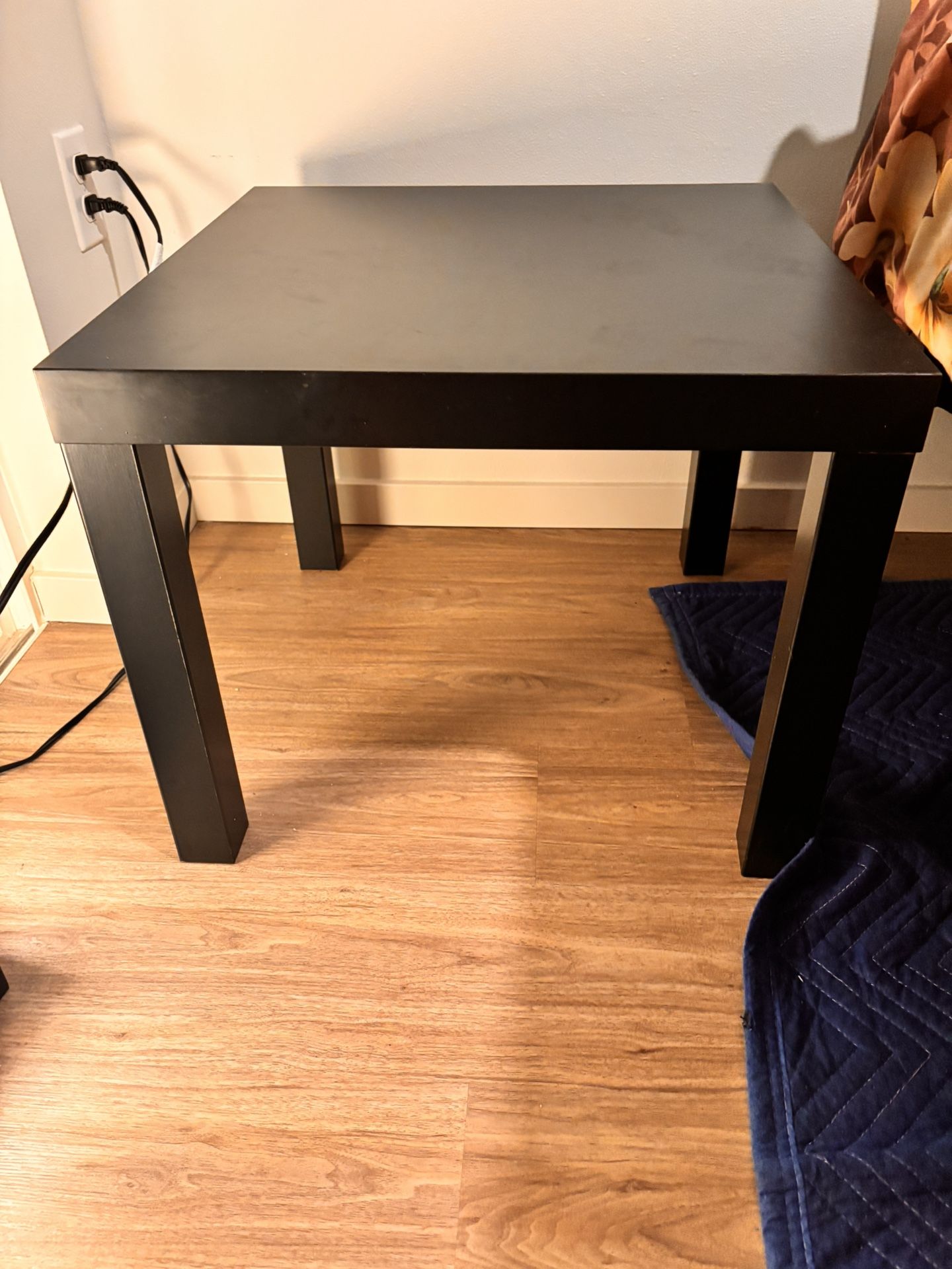 Sturdy and modern brown-black square table that works perfectly as a side table, bedside table, or small coffee table. It has a solid build (not flimsy or wobbly) and a clean minimalist design that fits any room. Light surface marks from normal use, but overall in very good condition. No damage, no wobbling. Features: • Versatile: works as bedside table / coffee table / end table / plant stand • Modern matte black finish • Apartment‑friendly size • Smoke‑free, pet‑free home Approx. size: ~22" x 22" top, ~18" height 📍 Pickup Downtown Redmond (near your area).