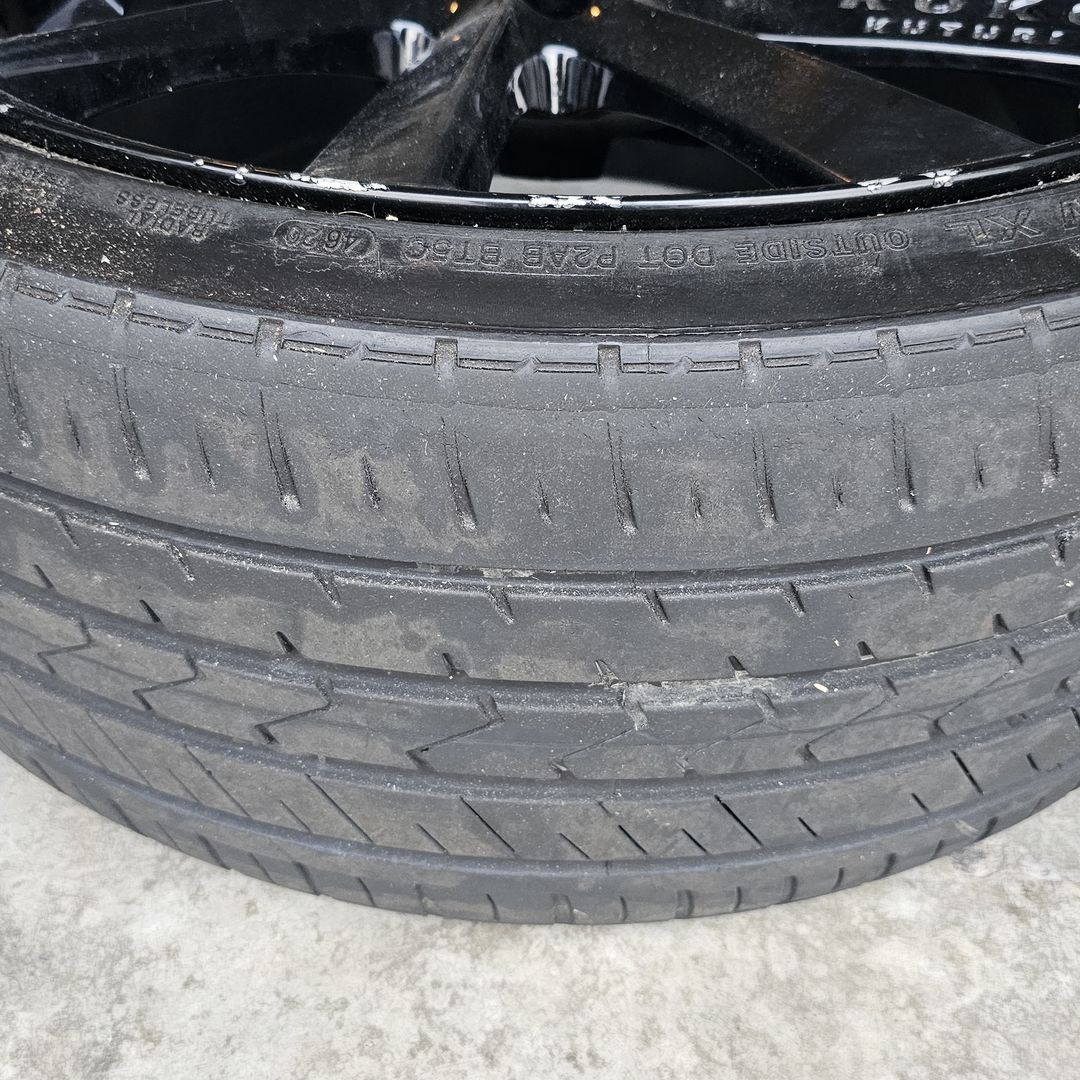 bmw 20" rims with 3 tire like new 1 might need to change see pictures and also curve rash .