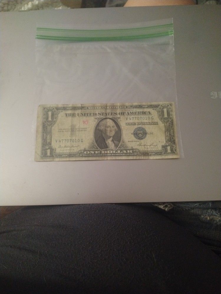 No in good we trust. 1935 E series silver certificate. Serial # V(contact info removed)0G. (Note cut wrong as well) Make offer please.reasonable offer
