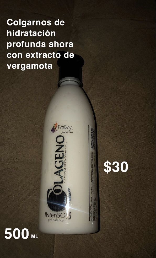 Colageno para lo maltratado del cabello con extracto de bergamota para el cresimiento y para lo reseco. Matizador negro para cabello más negro y Matizador azul para lo rojiso y amarillo del cabello con bleach