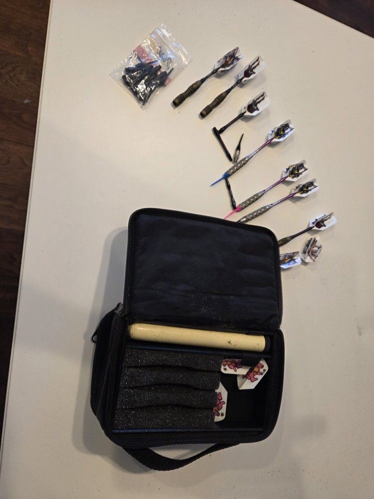 Dart set with tips and double sided bag for storage. Extra tips.