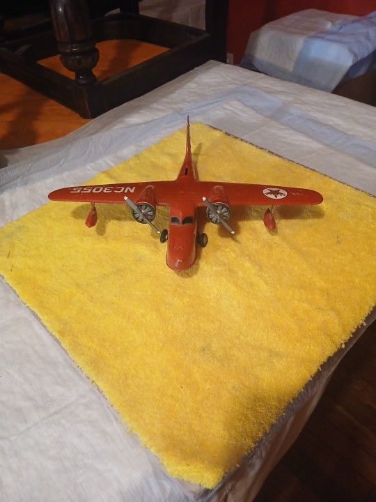cool looking die cast red 2 propengine airplane Texaco sticker and has a coin slot.