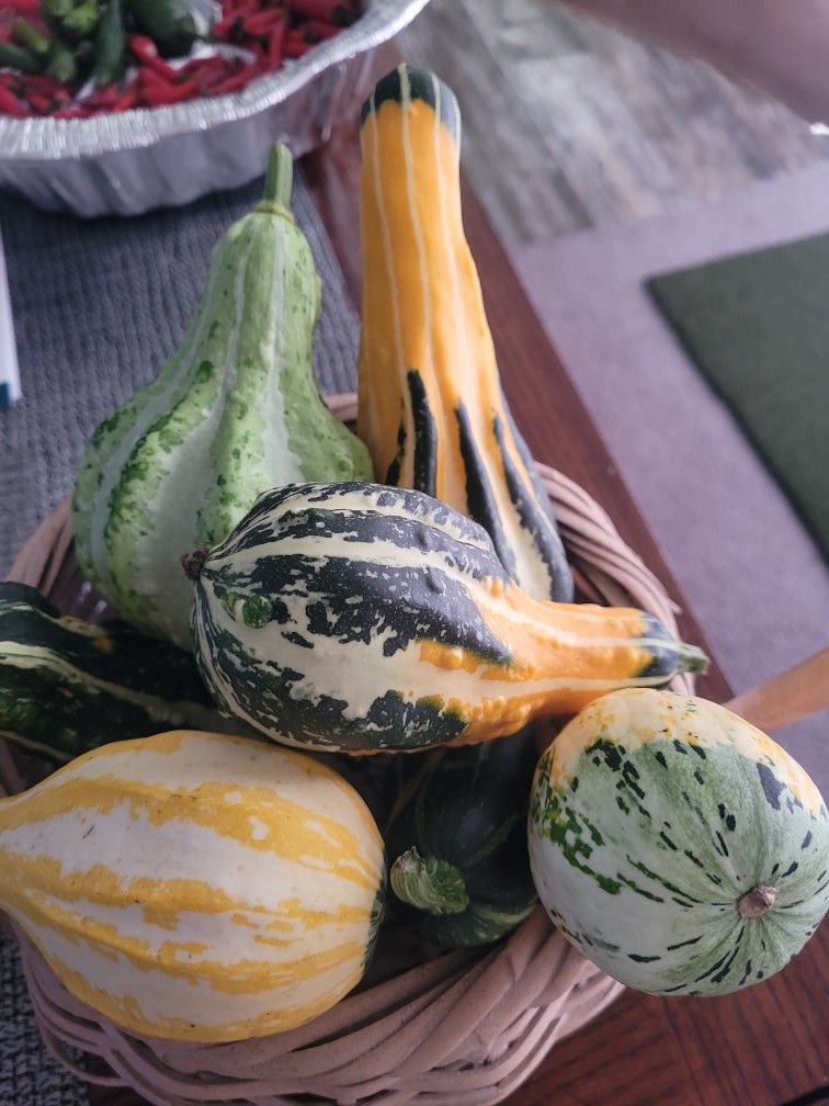 Fresh from my garden GORDS getting ready for fall 8 gords for 6.00 dollars firm.