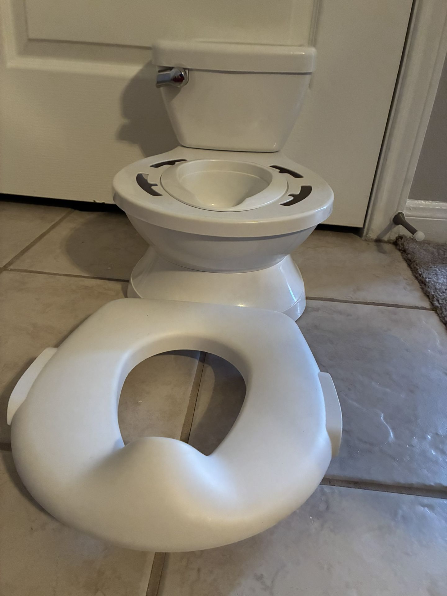 White potty seat, makes real flushing noise